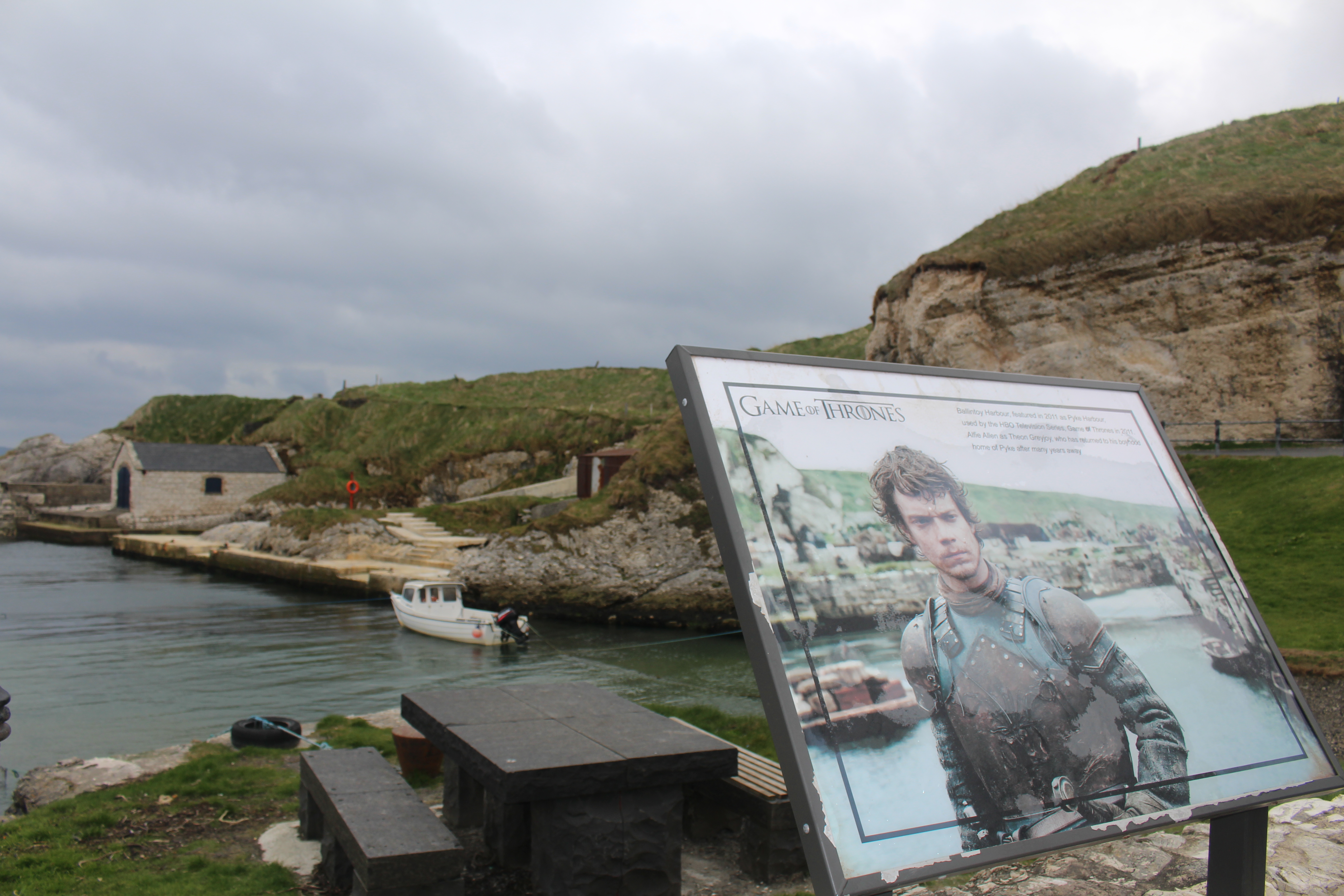 Ballintoy est un petit port situé tout en bas d’une falaise, au bout d’une petite route sinueuse. C’est le seul endroit que j’ai trouvé qui avait un panneau relatif à Game of Thrones (ce serait bien d’en installer dans d’autres endroits de tournage).