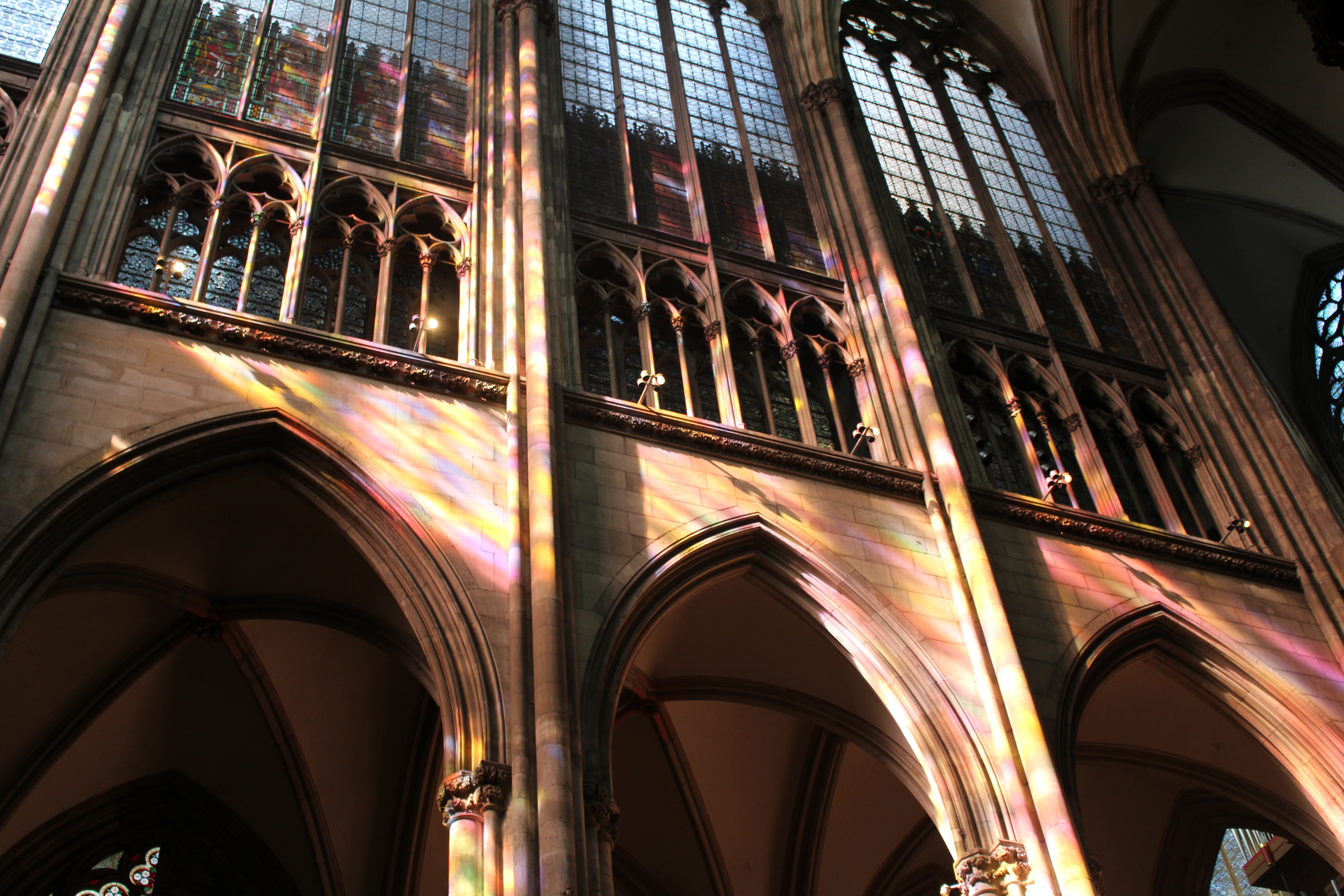 C’est un parfait exemple du style gothique, les plans du XIIIème siècle furent respectés durant les six siècles de construction. Elle fut bâtie sur les fondations d’une église du IVème siècle. En 1164, un événement changea l’histoire de la ville. L’archevêque de Cologne, Rainald von Dassel, apporta les reliques de Rois Mages dans la ville, reliques que l’empereur Frédéric Ier (dit Barberousse) s’était procuré lors de son invasion de la ville de Milan deux ans plus tôt s’assurant ainsi la prospérité de la ville et son rôle religieux proéminent. A l’époque, posséder des reliques conférait un pouvoir immense au souverain propriétaire et renforçait sa légitimité de droit divin. Il fallait donc désormais une cathédrale digne de ce nom pour abriter les reliques, pour accueillir les futurs pèlerins du monde entier et asseoir le pouvoir de l’archevêque le plus important de l’empire romain germanique. Elle fut consacrée en 1322, même si elle était loin, très très loin d’être achevée. Les deux tours ne furent ajoutées qu’au XIXème siècle.
