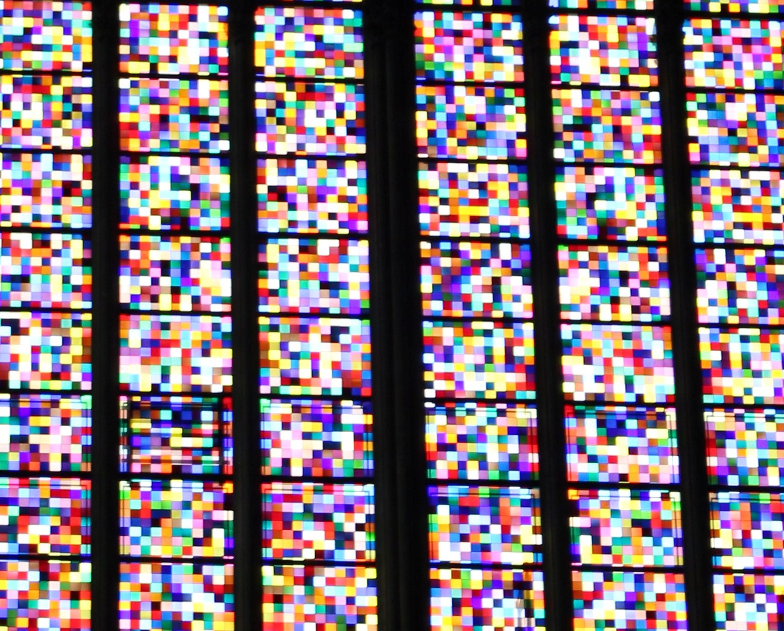 Le dernier vitrail n’a été ajouté qu’en 2007…et quel vitrail! Oeuvre de Gerhard Richter, on dirait des milliers de pixels avec ses 11 500 carrés de 72 couleurs différentes. Il fait pénétrer la lumière dans la cathédrale comme aucun autre et apporte une touche de modernité totalement improbable dans ce lieu du Moyen-Âge.