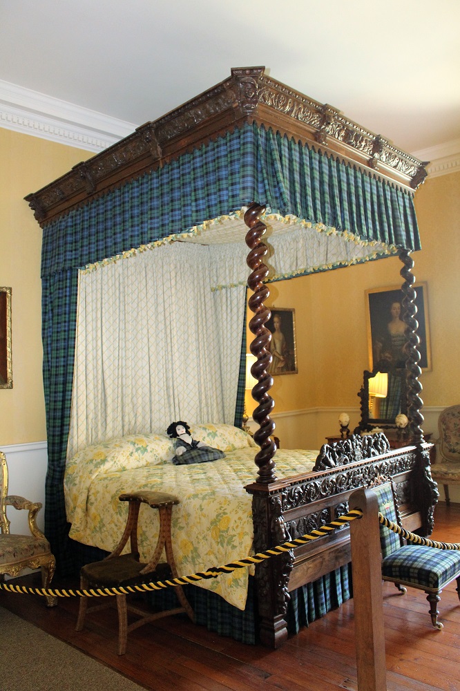 C’est au premier étage que vous rencontrerez peut-être le fantôme qui hante les lieux…ou plutôt un lieu en particulier: le lit à baldaquins. Ce n’est pas un fantôme comme les autres. En 1644, un jeune joueur de harpe irlandais fut assassiné dans ce lit par les hommes du duc de Montrose…mais pas dans ce château! Le lit se trouvait à l’époque dans le château des McAthur. Le lit fut déménagé à Inveraray, le fantôme du jeune Irlandais a déménagé avec lui. La légende dit que lorsqu’un membre de la famille est sur le point de mourir, on peut entendre un air de harpe provenant de la chambre. Il y aurait d’autres fantômes attachés au château: une femme en gris, une cuisinière de mauvais poil, et même un bateau qui flotte vers l’horizon à la mort du maître des lieux. Oui, en Ecosse, même les bateaux peuvent devenir des fantômes!