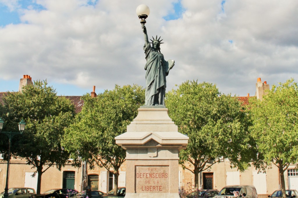 Sur la place de la Liberté à Poitiers, on peut trouver une réplique de la fameuse statue de New York. Aucun lien avec les Etats-unis pour autant. Avant de s’appeler place de la Liberté, c’était la place du pilori où on exécutait les criminels du coin. C’est donc ici que fut exécuté le général Berton en 1822 (accusé de conspiration) après avoir crié « vive la liberté ». Son souvenir a perduré parmi les francs-maçons et en 1903 ils firent ériger une statue de la Liberté pour lui rendre hommage.