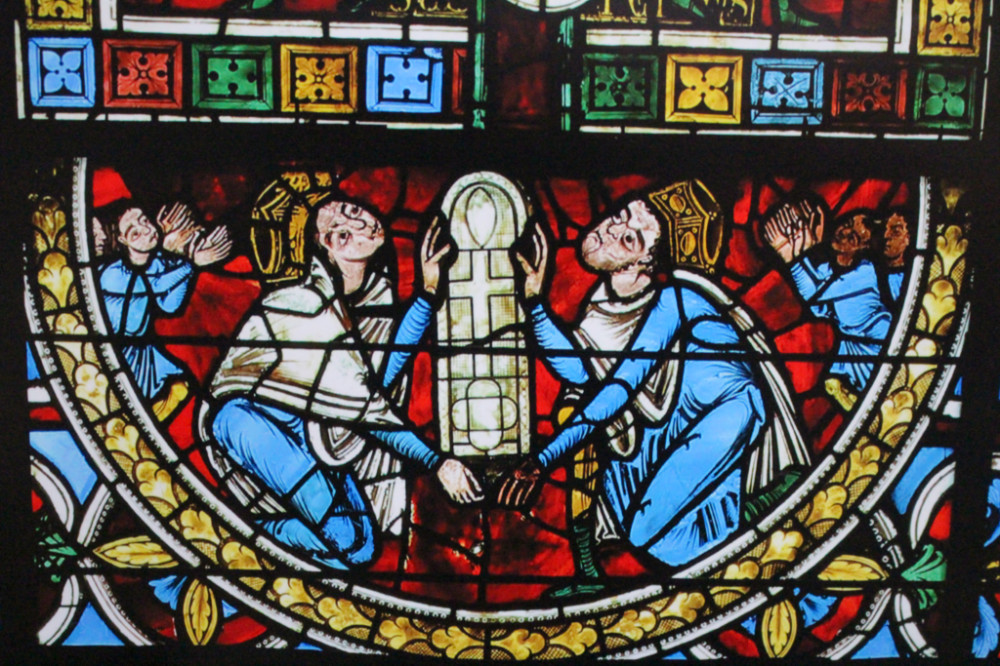 le vitrail de la cathédrale de Poitiers représentant Aliénor d’Aquitaine et Henri II livrant la cathédrale