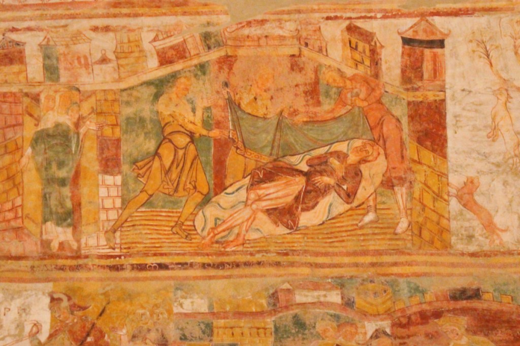 Presque mille ans après leur réalisation, les fresques impressionnent encore. A nos yeux contemporains, il faut tout de même ajouter des explications pour comprendre leur signification. La lecture de la nef n’est pas linéaire et les personnages font plus de deux mètres pour pouvoir les voir convenablement du sol. On y retrouve les personnages principaux de l’Ancien testament: Caïn et Abel, Abraham, Moïse, et Joseph. Chaque histoire est représentée sur plusieurs dessins. J’ai particulièrement apprécié l’épisode de la Tour de Babel, mais aussi les représentations des arbres dans les différentes scènes.