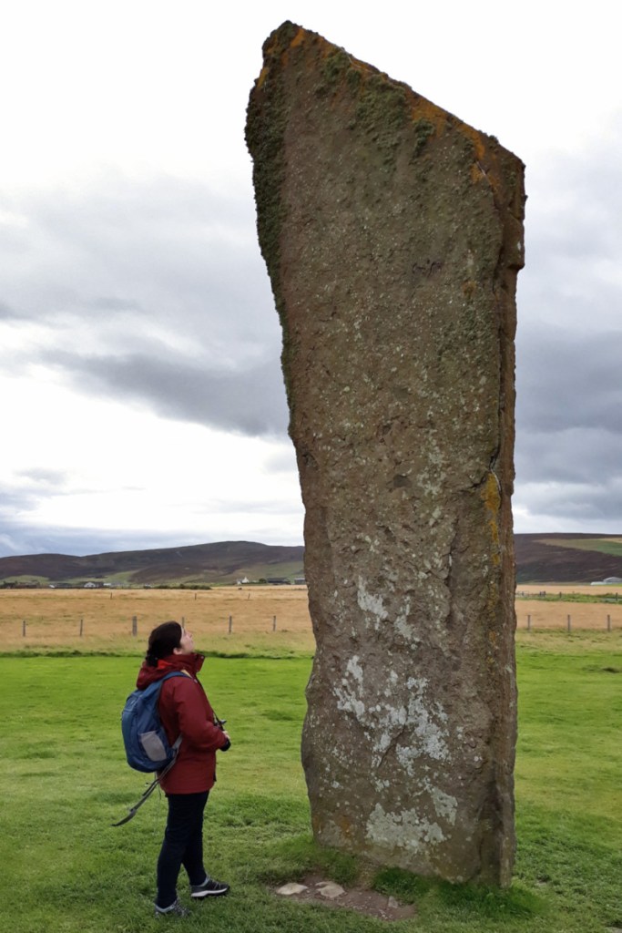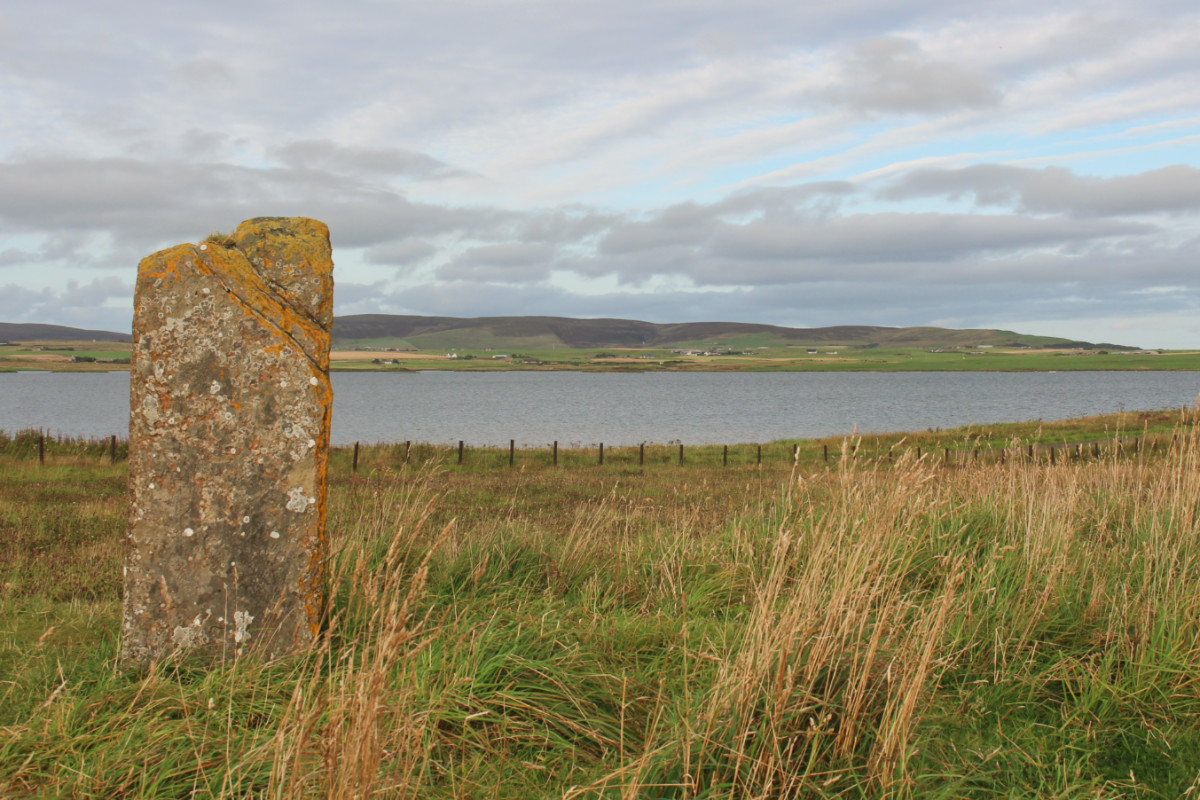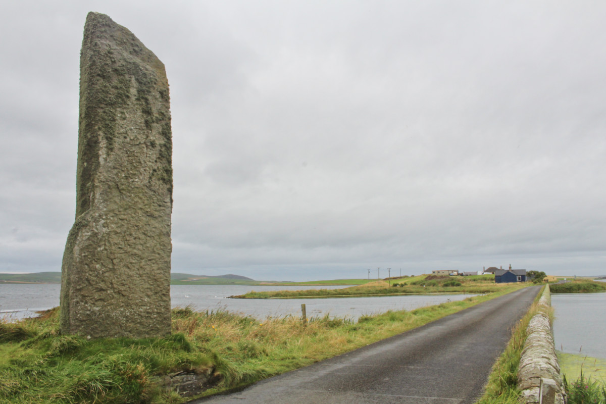 Ce monolithe mesure 1,75m de haut et a l’air d’être tout seul mais il ne l’était peut-être pas. Situé sur le chemin qui mène au cercle de Brodgar, des archéologues pensent qu’il est le seul élément encore visible d’un dolmen en forme de table.