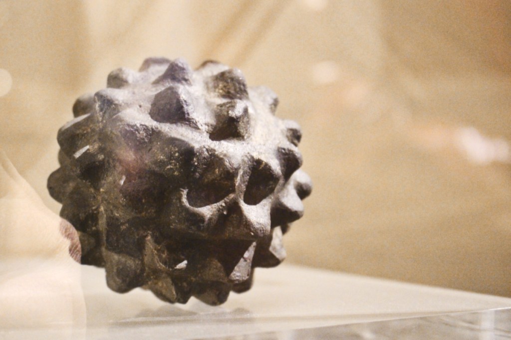 La visite commence par le hall d’exposition à l’entrée du site dans lequel on peut en apprendre plus sur la vie à cette époque et voir des bijoux, outils, poteries et autres objets mystérieux (comme cette balle à picots) retrouvés sur les lieux. Il y a aussi une boutique et un café.