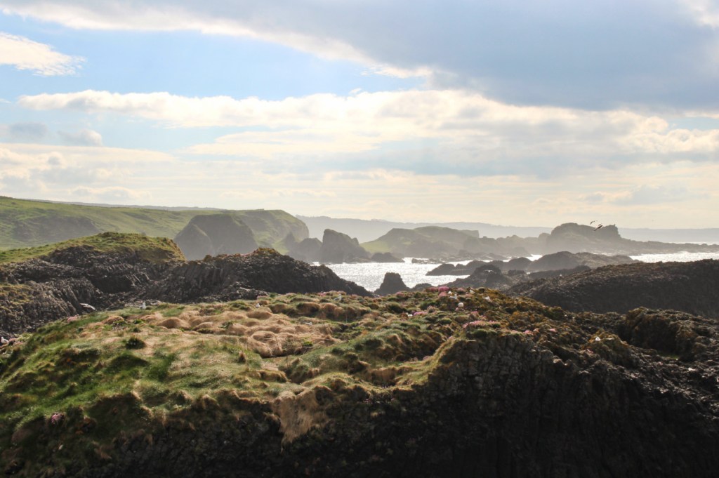 Entre Ballintoy et la Chaussée des Géants, la route longe la baie de Whitepark. Des moutons menaient tranquillement leur petite vie sur la route bloquant le trafic, ce qui nous a donné l’occasion de nous arrêter sur le bord pour admirer la vue paradisiaque.