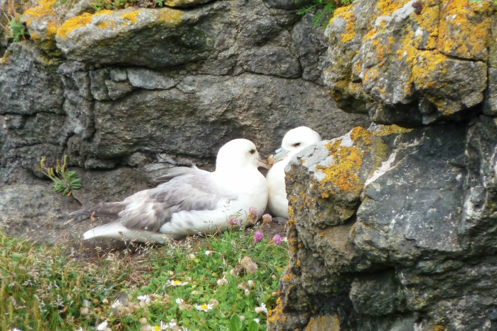 Et pour admirer tout ça sous des angles différents, nous sommes montés tout en haut des falaises par les chemins balisés…et on y a trouvé des moutons (évidemment!). On a surtout pu profité d’une vue grandiose sur la Chaussée et sa baie, avec même un petit rayon de soleil.