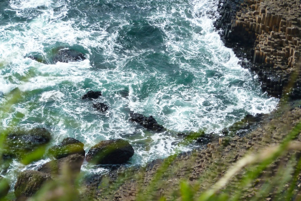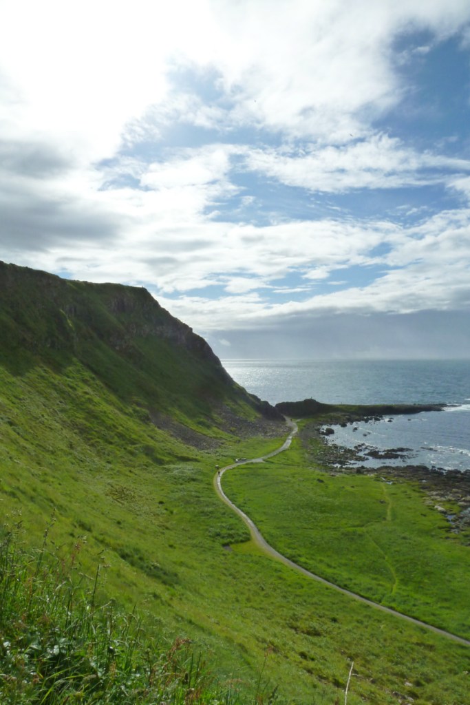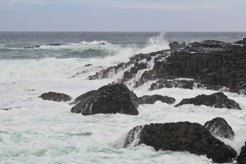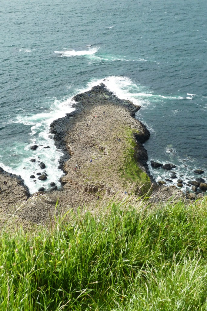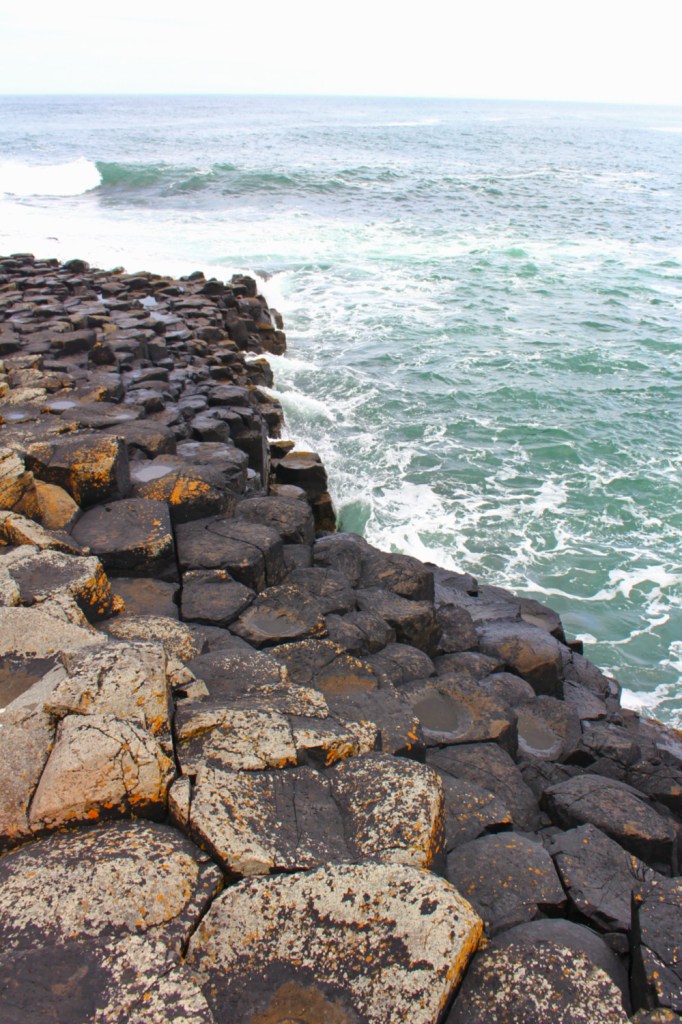 Nous reprenons la route direction l’arrêt incontournable de la Causeway coastal route: la Chaussée des Géants. Pour tout dire, cela faisait des années que je rêvais de voir ce site exceptionnel et j’avais peur d’être déçue. Ma seule déception fut que l’accès au site était une fois de plus payant (environ 12€ en passant au centre d’information, audio-guide compris). Il est néanmoins possible d’y accéder sans payer. Je vous conseille fortement d’y aller en dehors des gros week-ends d’affluence car le site draine énormément de touristes. Le site est classé au patrimoine mondial de l’UNESCO depuis 1986…et en y mettant les pieds, on comprend pourquoi. Il faut marcher un peu avant d’apercevoir la fameuse langue de pierre avançant dans la baie.