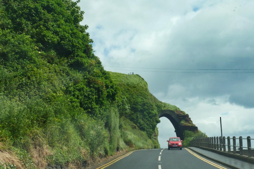 A la sortie du village de Waterfoot, la route passe sous une arche en pierres rouges qui annonce notre prochain arrêt.