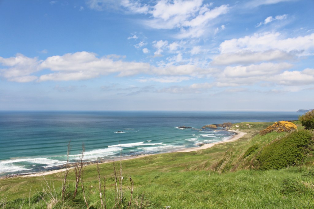 Un tout petit peu plus loin se trouve la baie de Murlough. Il y a un petit air de bout du monde à cette route très sinueuse sur laquelle on croise les doigts pour ne croiser aucune autre voiture. Le cas doit être rare. On y croise surtout des moutons, beaucoup de moutons, et des vaches. Tout ce petit monde occupe allègrement la route sans se soucier si vous voulez passer donc il faut parfois prendre son mal en patience. Cette baie frappée par le vent fut aussi un lieu de tournage de Game of Thrones. Arrivés au bout de la route, tout en bas de la falaise, pas d’autre choix que de faire demi-tour et prier une nouvelle fois pour ne croiser personne en montant.