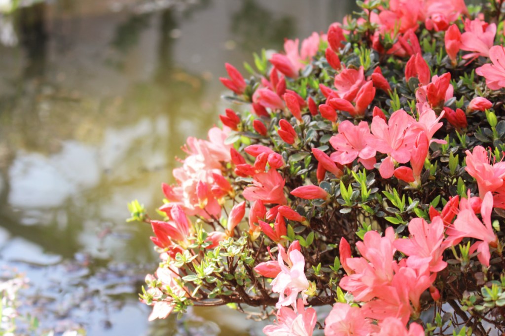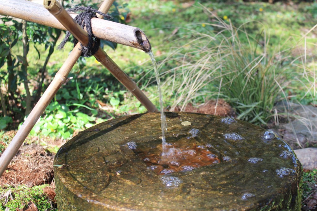 Le style des jardins correspond à la période EDO (XVIIIe siècle). L’eau est un aspect primordial, le parc s’articule autour de l’étang alimenté par la rivière la Moine qui traverse la propriété. Il y a d’ailleurs des fontaines traditionnelles à bascule shishi-odoshi, ces fameuses fontaines de bambous qui se remplissent puis claquent quand elles se vident à intervalles réguliers. On peut y trouver plus de 400 espèces de plantes. En ce mois de mars, il était un peu tôt dans la saison et à part les cerisiers, il n’y avait que des camélias, des azalées et des andromèdes en fleurs, le reste du parc était encore endormi lui donnant d’ailleurs un air d’automne.