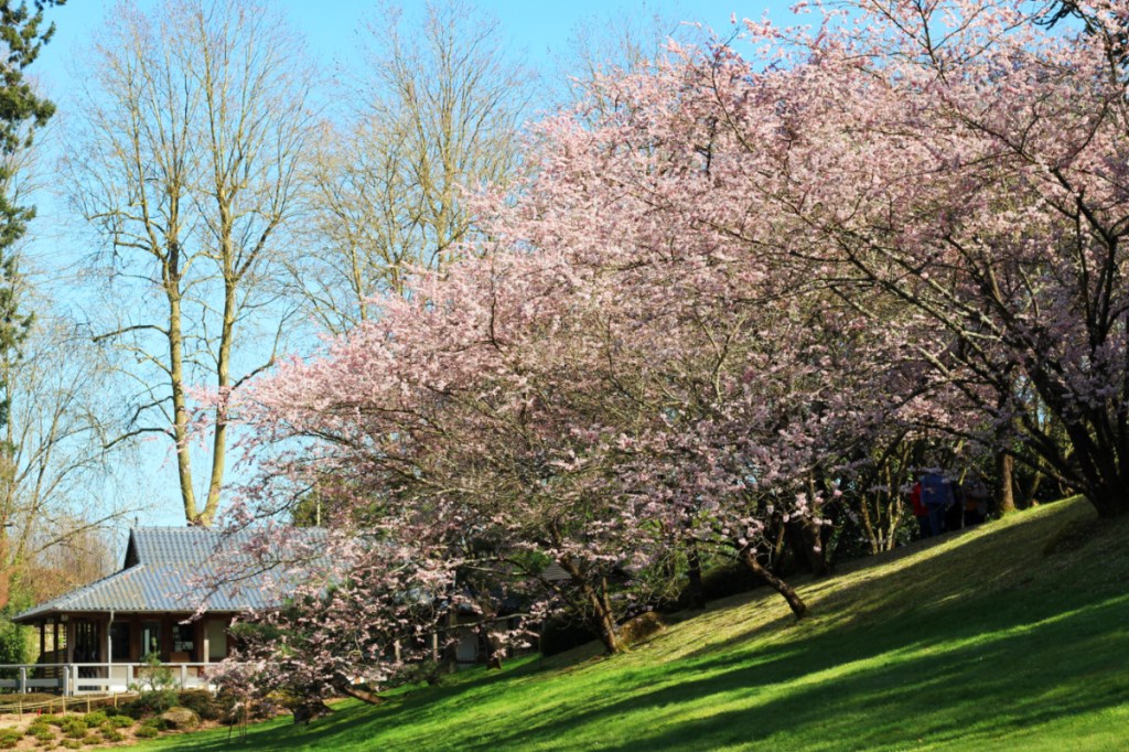 L’Hanami (littéralement « regarder les fleurs » en japonais) est un des temps forts de l’année au Japon. Cette fête traditionnelle se déroule principalement entre fin mars et début avril au moment où la floraison des cerisiers est la plus intense. On estime que cette coutume date du VIIIe siècle pendant l’ère Nara. La pleine floraison est éphémère et ne dure qu’une dizaines de jours. Au Japon, il y a même des bulletins météorologiques spécialisés pour les prévisions de floraison. Les Japonais ont l’habitude de pique-niquer sous les cerisiers, et pendant cette période, c’est également autorisé dans le parc de Maulévrier.