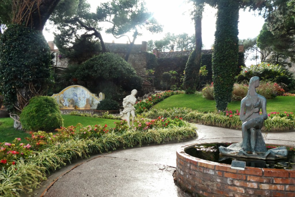 Les jardins d’Auguste sont un écrin pour cette vue. Nous nous attardons un peu plus longtemps au milieu des arbustes colorés, des parterres de fleurs et des statues car le chemin que nous voulions prendre pour continuer la balade est malheureusement fermé à cause d’un éboulement. Il faudra donc faire demi-tour et revenir dans le village.