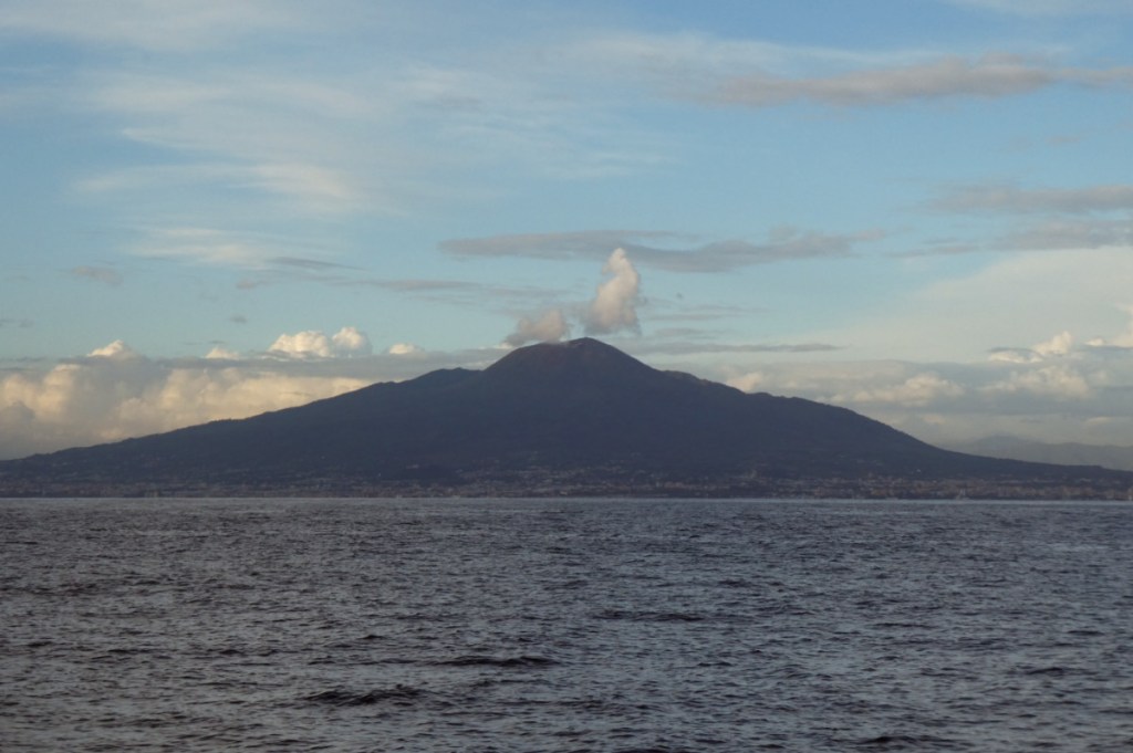 Lors de notre week-end à Naples, nous voulions nous échapper de la ville et goûter à un peu de dolce vita. Ce que nous n’avions pas prévu en revanche, c’est le mauvais temps. En plein mois d’octobre, cela n’a rien d’exceptionnel, et il faut faire avec. Mais quand la destination finale est l’île de Capri, on se pose la question si cela vaut le coup de faire le déplacement alors que le ciel promet de nous tomber dessus. Déterminées, nous avons quand même pris le train circumvesuviana pour faire le tour de la baie de Naples jusqu’à Sorrente (Sorrento en italien). Nous avions décidé d’aviser une fois sur place, si le ciel nous accordait une éclaircie, nous prendrions le bateau pour Capri. Dans le cas contraire, la station balnéaire de Sorrente ferait l’affaire.