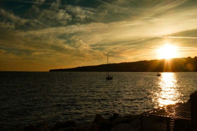 Castel dell’Ovo, littéralement « le château de l’œuf », est une autre forteresse de Naples qui fait penser à la première. Cette forteresse du XIIe siècle est le plus ancien château de la ville. Il est le gardien de la baie. Il doit son nom étrange au poète Virgile qui y aurait enterré un œuf assurant que Naples s’effondrerait si l’œuf se cassait. En cette fin de journée, le château était fermé, mais le pont qui y mène était bondé. C’est visiblement LE spot napolitain pour le coucher de soleil…et je comprends pourquoi!