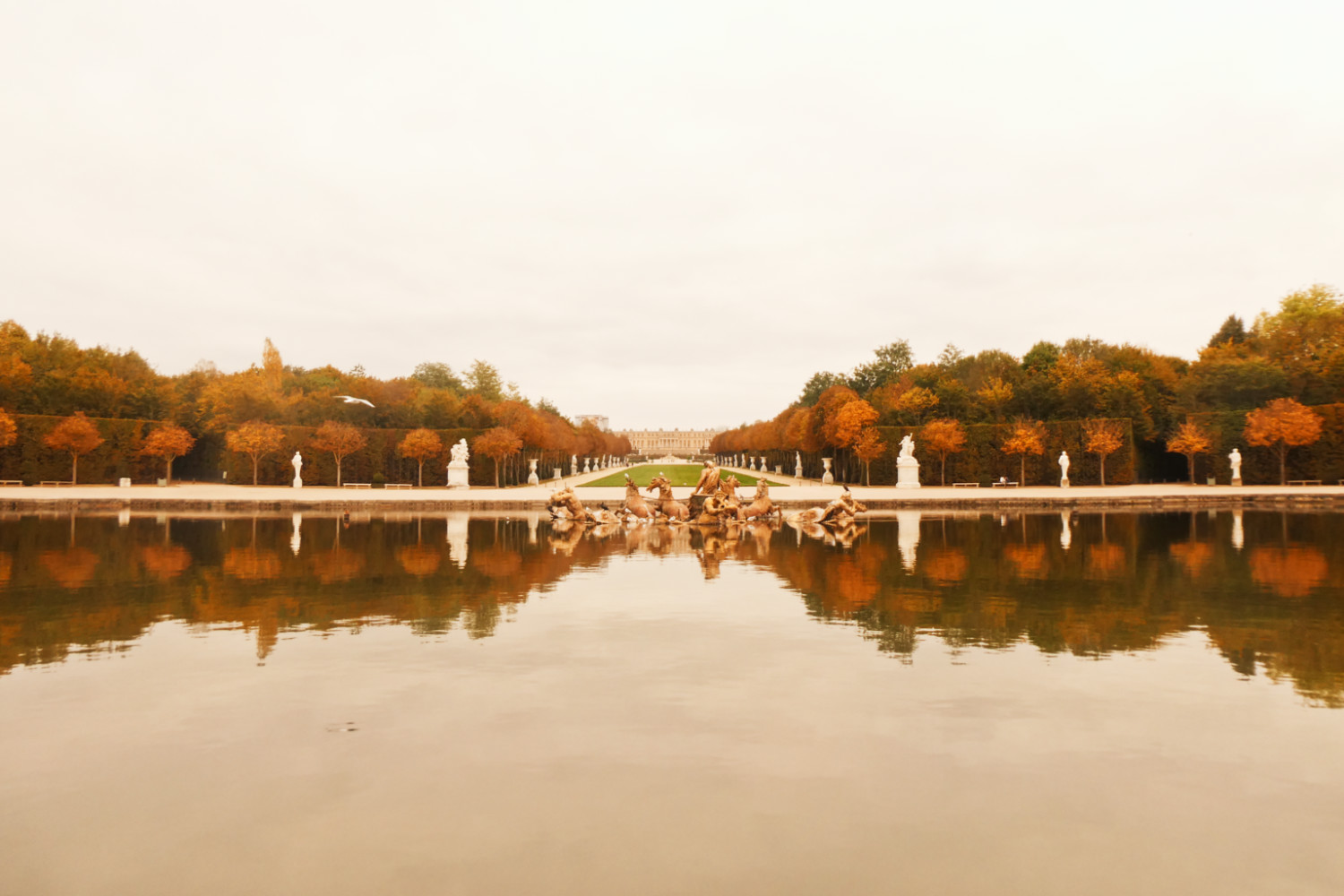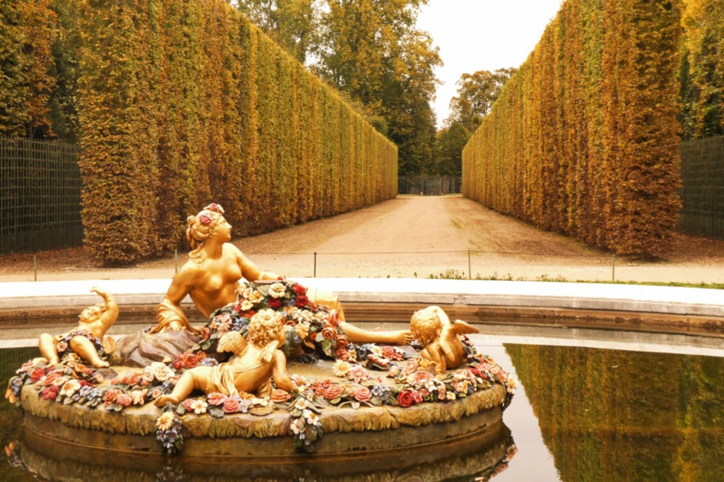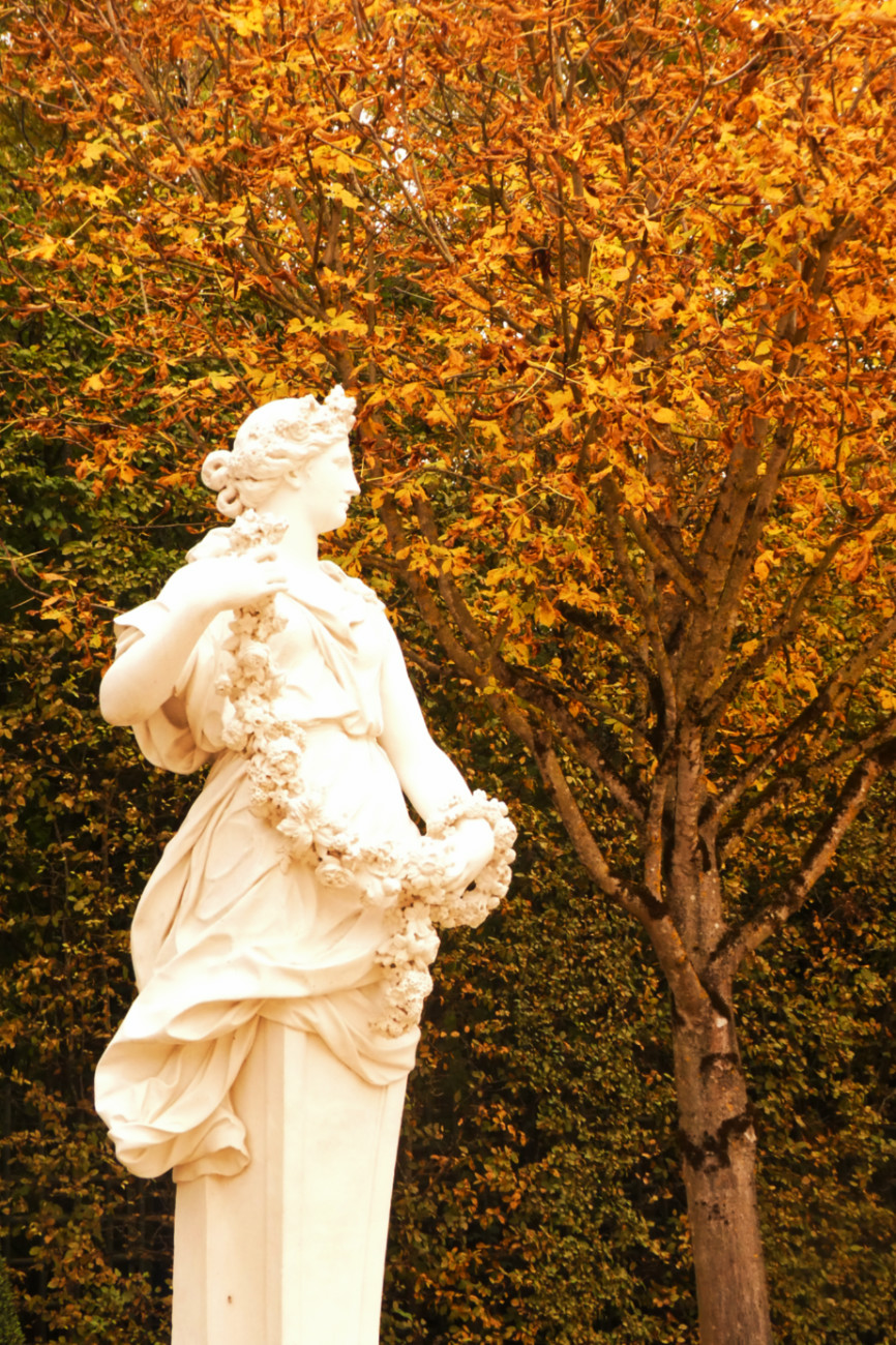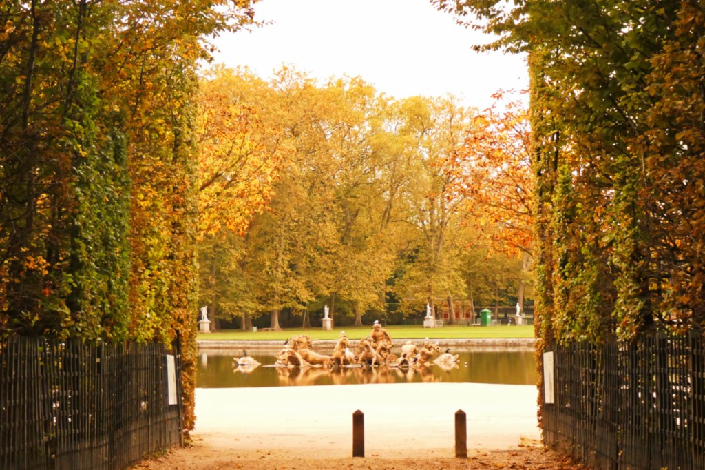Il faut certainement plusieurs visites pour pouvoir faire le tour de tout le domaine. Je n’ai malheureusement pas eu le temps d’aller jusqu’aux châteaux de Trianon ni au hameau de la reine. Cependant, j’ai profité des jardins sans personne. Malgré le ciel morose, il régnait une atmosphère calme et chaleureusement automnale dans les jardins. Les arbres commençaient à afficher fièrement leurs couleurs d’automne et j’étais presque seule pour les admirer.