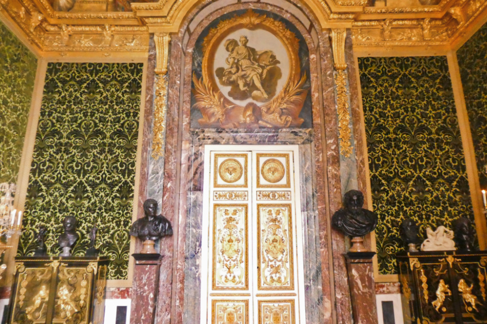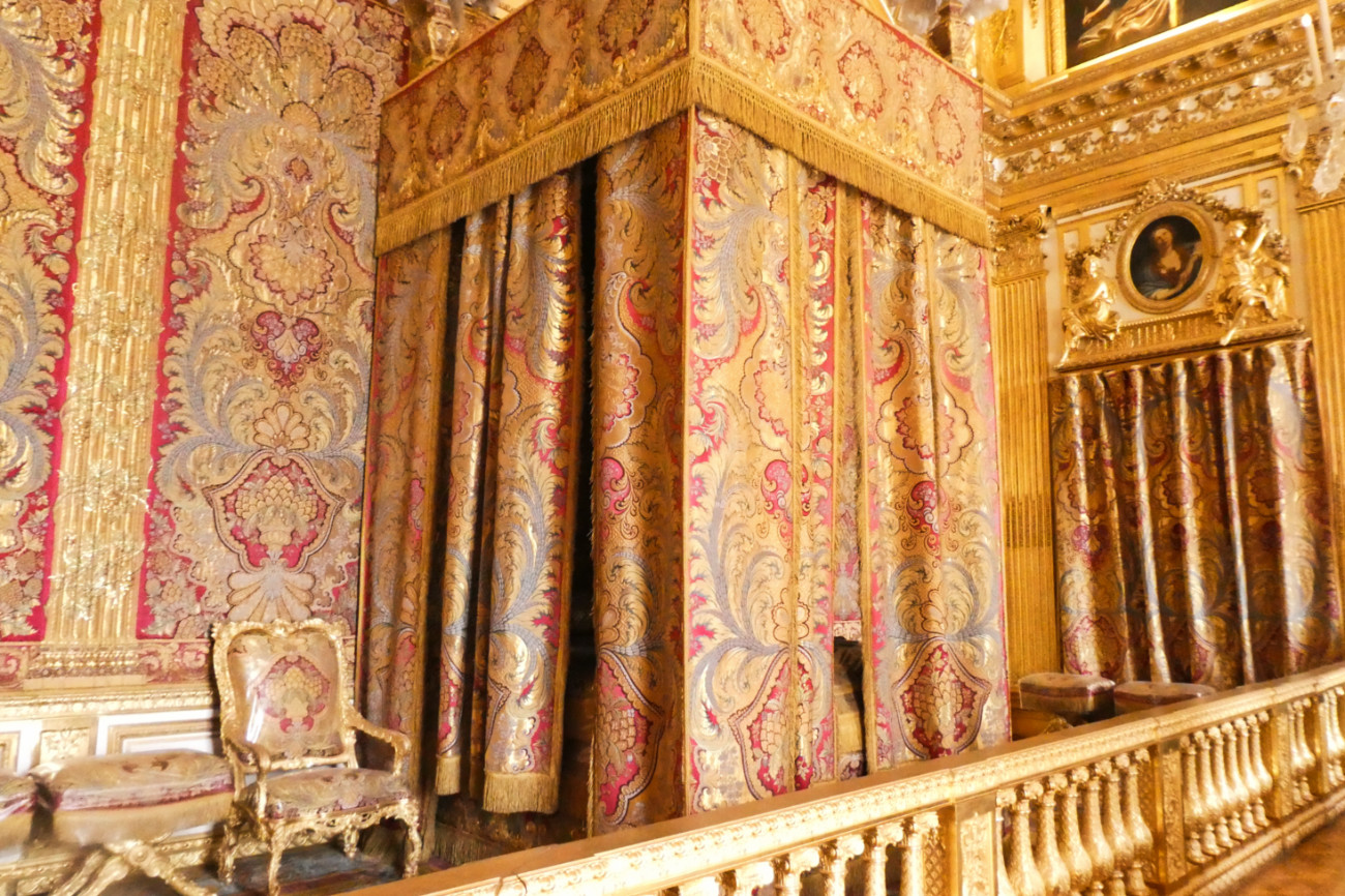 On visite finalement assez peu de salles (en tout cas, moins que ce que j’attendais), peut-être est-ce dû à la situation actuelle et au sens unique de visite. Les appartements royaux sont à la hauteur de ce qu’on peut imaginer de Versailles: des dorures, du mobilier précieux, des tableaux, du velours etc.