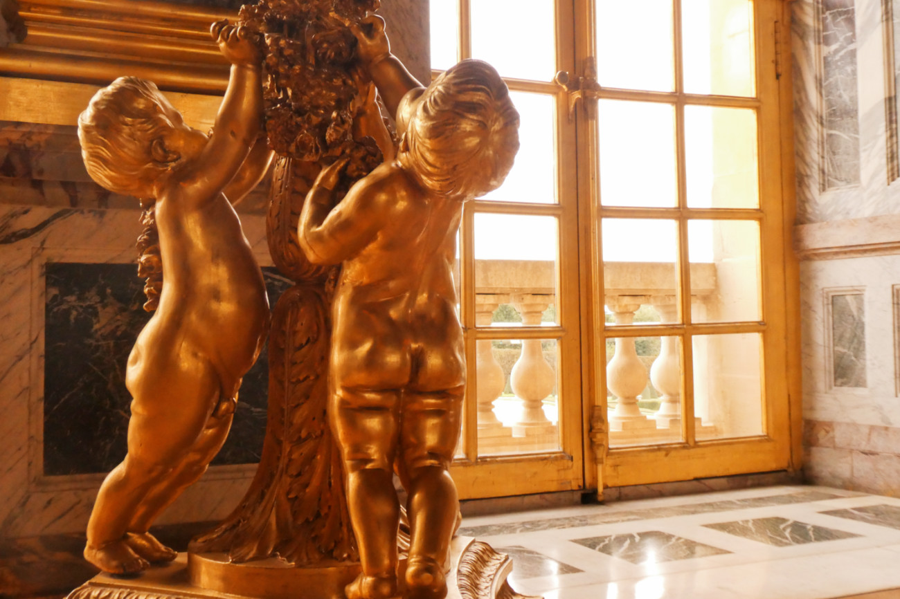 Traverser la galerie des Glaces vide, qui n’en a pas rêver? C’est en arrivant dans la galerie que je réalise vraiment la chance que j’ai de visiter ce lieu à cette époque (même si je regrette cruellement de ne pas avoir pris mon appareil réflexe). À l’origine se trouvait une terrasse qui reliait les appartements du roi et ceux de la reine. C’est l’architecte Jules Hardouin-Mansart qui fera la modification en 1684. Les peintures du plafond sont évidemment à la gloire de Louis XIV. Les murs sont recouverts de 357 miroirs sur 73 mètres de long. C’est aussi dans la galerie de Glaces que fut signé le Traité de Versailles en 1919 qui mit officiellement fin à la Première Guerre mondiale.