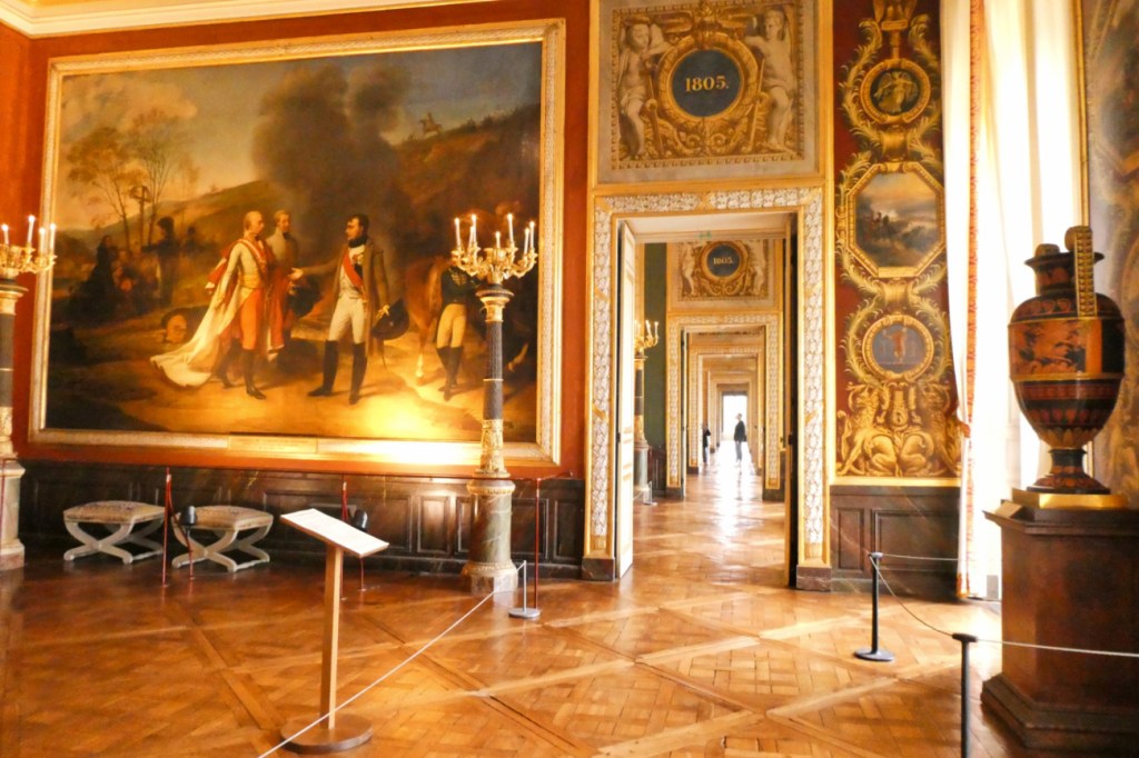 L’histoire de Versailles ne s’est pas arrêtée avec Louis XIV. Dans les ailes, on peut croiser également Napoléon. Plusieurs pièces sont consacrées à l’empereur dont on peut voir les plus fameux tableaux comme celui de son sacre ou celui de sa campagne en Égypte. Mais la pièce la plus impressionnante est la galerie des Batailles, salle de 120 mètres de long consacrée exclusivement aux succès militaires de la France à travers les siècles, de Clovis à Napoléon.