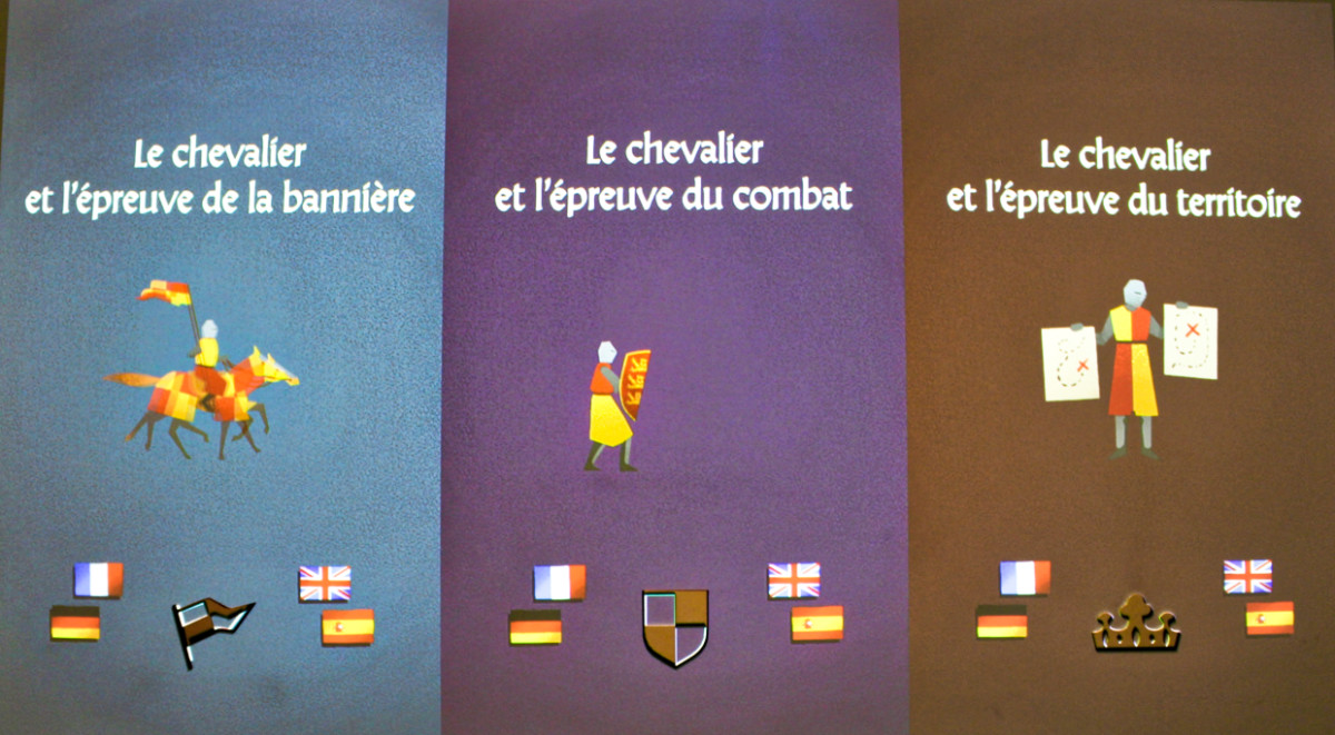 C’est ensuite avec des panneaux interactifs que l’on découvre un peu plus l’époque d’Aliénor grâce à des écrans de jeux tactiles. À nous de compléter les terres appartenant au Royaume d’Aliénor, de répondre aux quiz des chevaliers, de tirer à l’arc pour faire tomber la couronne du roi Jean sans Terre, de choisir son troubadour préféré (façon auditions de The Voice avec un buzzer) ou encore de traduire les poèmes en langue d’oc.