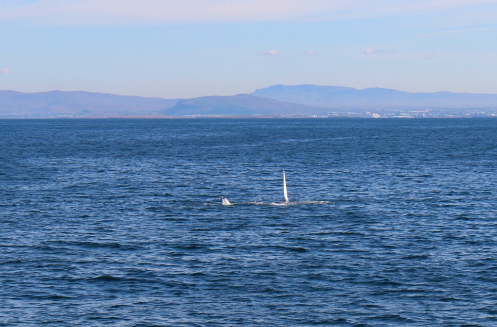 J’avais un dernier rêve avant de partir: voir des baleines. Plusieurs compagnies sur le port proposent des tours en bateau pour tenter d’apercevoir des cétacés. C’est un coût (environ 85€), mais je ne regrette pas l’expérience. Nous avons fait une sortie de 3 h avec la compagnie Elding, sous un soleil radieux. Nous n’avons pas eu besoin d’aller très loin au large de Reykjavik. Nous avons vu un peu moins de 10 baleines de Minke (petits rorquals), elles ressemblent à des dauphins noirs à cause de leur aileron, mais font tout de même 7 m de long. Et surtout, nous avons pu voir une baleine à bosse du nom de Marioupol (le bateau est resté à bonne distance pour ne pas trop la déranger). Un dernier moment magique avant de reprendre l’avion en soirée.