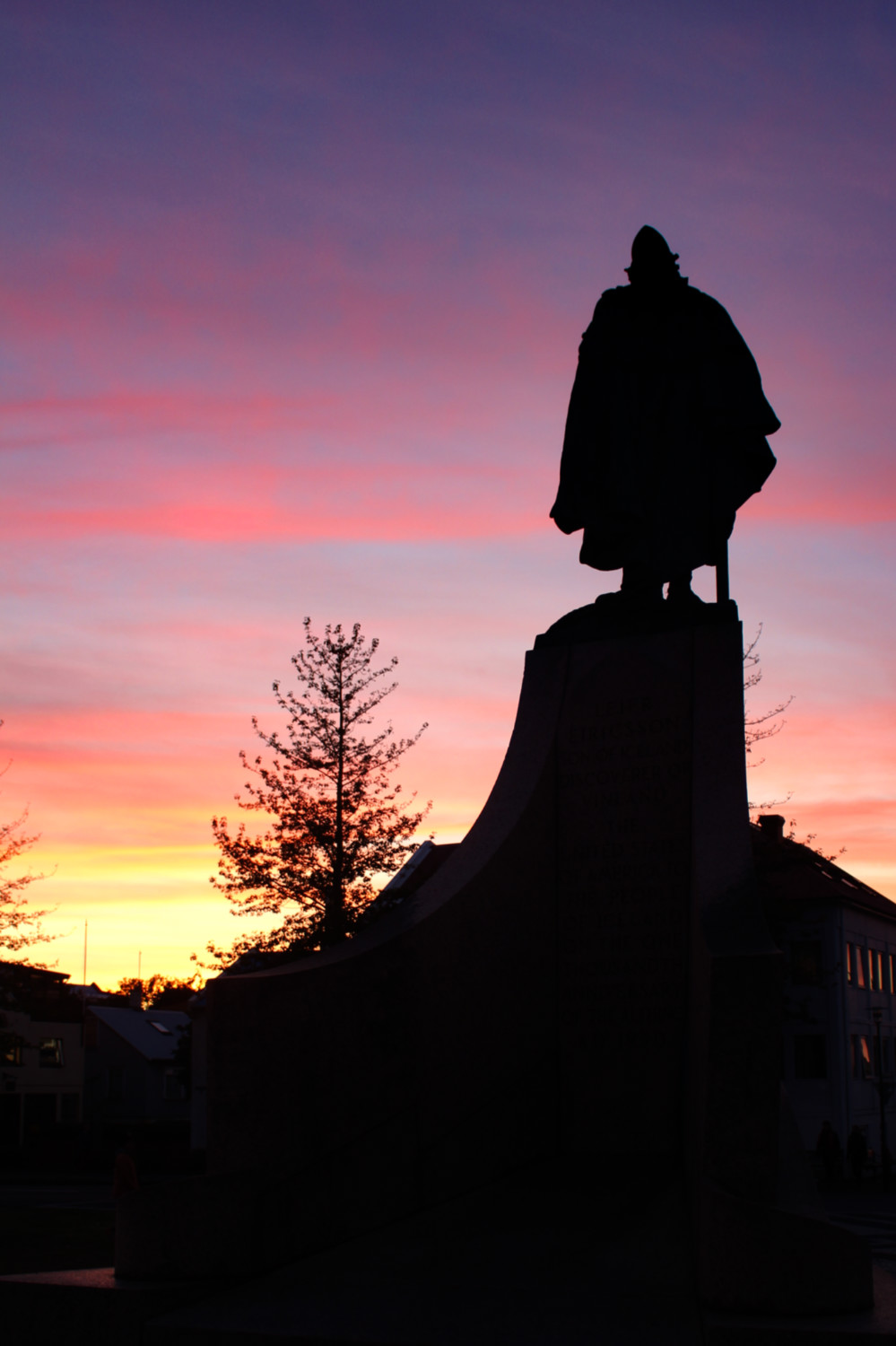 Le tour de la ville fut assez rapide, même si elle offre quelques points incontournables. Je crois qu’après une semaine dans des paysages naturels tous plus impressionnants les uns que les autres, la ville n’avait aucun attrait pour nous. Peut-être faut-il commencer son séjour par Reykjavik en fait. L’Hallgrimskirkja est l’emblème de la ville. Construite après le Seconde Guerre mondiale, cette église luthérienne de 74 m de haut est faite de colonnes de béton en forme d’orgues, comme on en trouve à Reynisfjara, à Svartifoss ou à Dverghamar. Et finalement, c’est en la voyant à la fin du séjour que j’ai compris son architecture. Sur son parvis trône une statue de Leif Erikson, le viking qui a atteint l’Amérique autour de l’an mille, bien avant Christophe Colomb. Malheureusement, l’église était fermée pour travaux lors de notre passage.