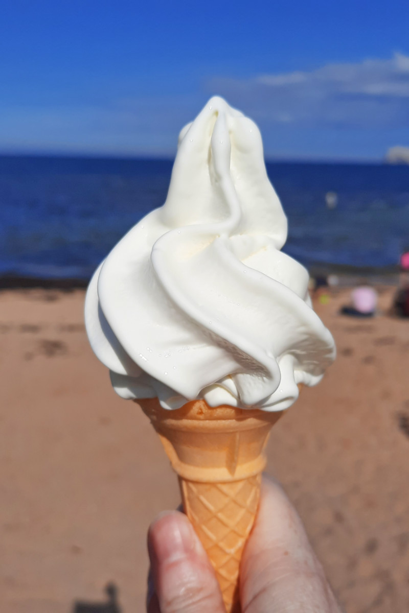 Je suis passée d’une plage à l’autre, tantôt observant la course, tantôt laissant glisser les grains de sable entre mes orteils. J’étais ravie de cette escapade imprévue, ravie de marcher pieds nus dans la sable et même de tenter de mettre les pieds dans l’eau fraîche, de respirer l’air marin et de manger une glace sous l’œil inquisiteur des goélands sur la plage de Milsey.