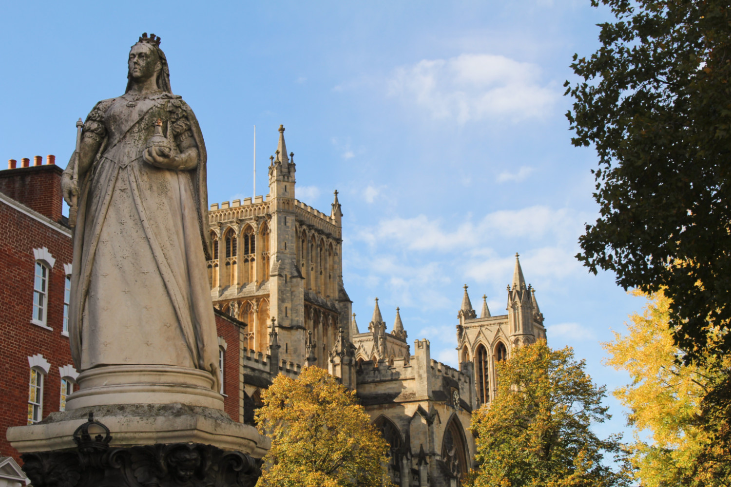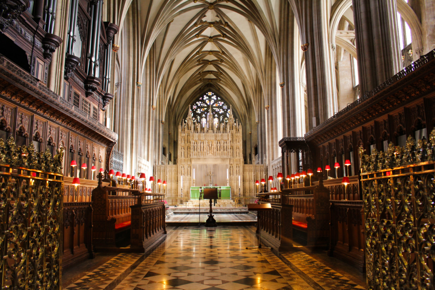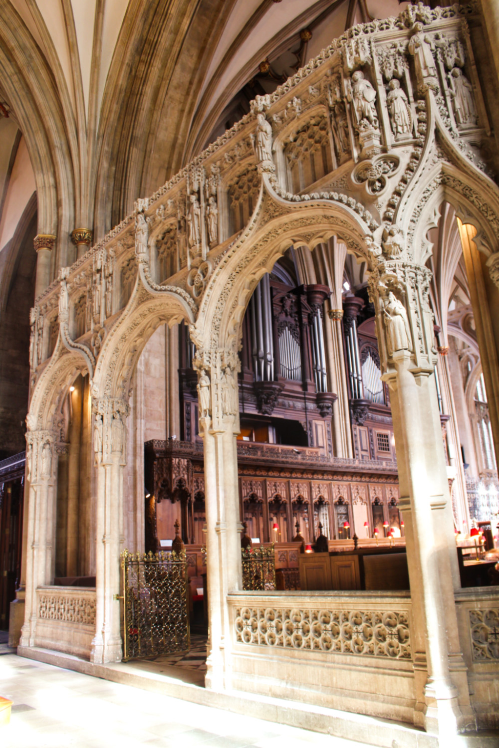 La cathédrale de Bristol a été fondée en 1140 par un riche propriétaire local, Robert Fitzhardinge. Son nom officiel est la cathédrale de la Sainte et Indivisible Trinité. Sa construction s’est déroulée sur plusieurs siècles. La partie la plus ancienne est la Chapter House, construite vers 1160 de style normand. Cependant, la façade avec ses tours jumelles ne date que de la fin du XIXe siècle. On peut aussi y voir des vitraux post-Seconde Guerre mondiale rendant hommage aux soldats et infirmières.