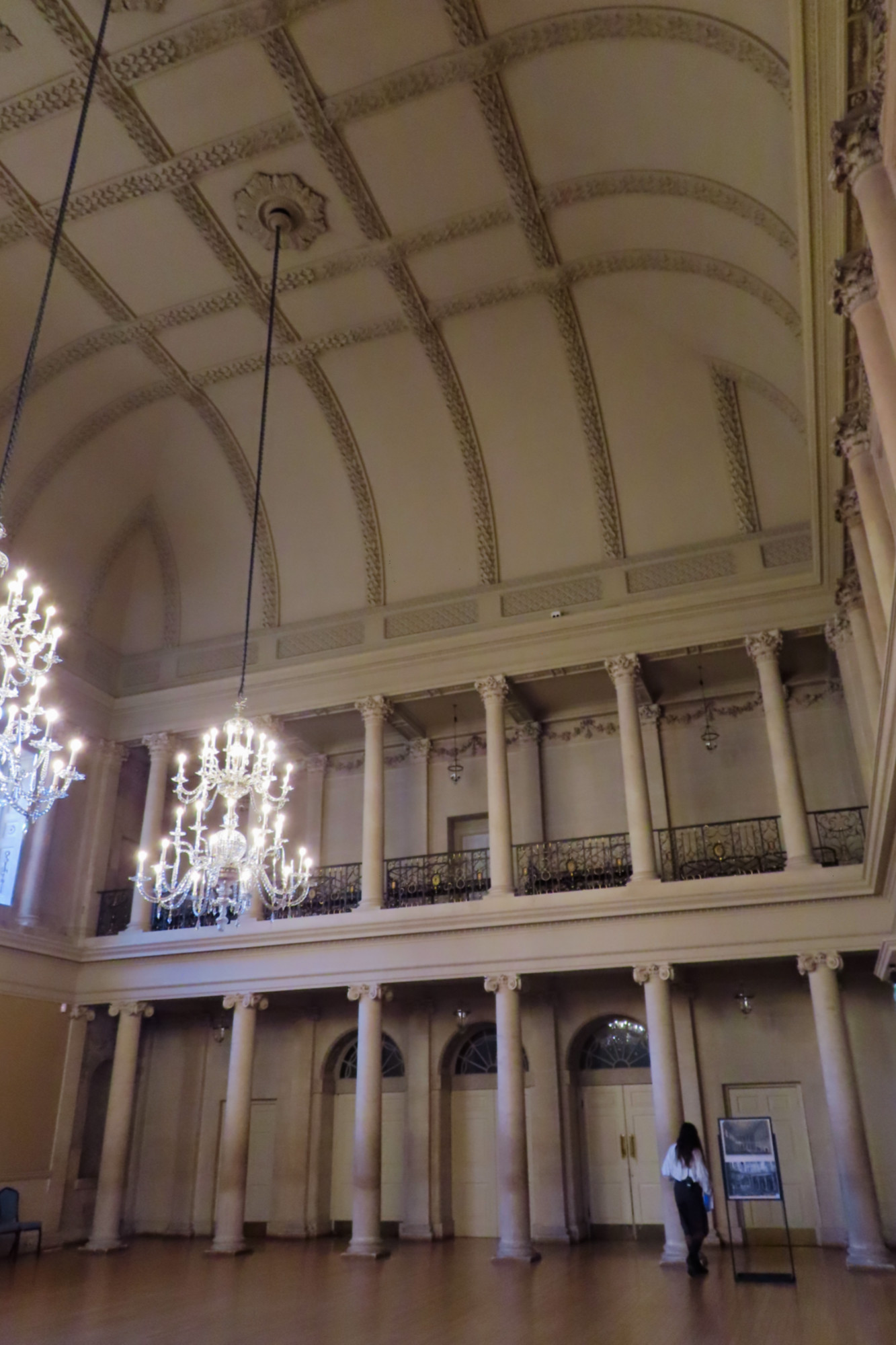 Conçues par John Wood le Jeune (encore lui!) en 1771, les Assembly rooms sont les seules salles des fêtes du XVIIIe siècle qui subsistent aujourd’hui à Bath. À l’époque georgienne, il y en avait deux autres, preuve que Bath était un haut lieu de la vie mondaine britannique. Jane Austen, ou encore Charles Dickens, fréquentaient les Assembly Rooms où l’on venait danser, prendre le thé, jouer aux cartes et surtout, trouver un époux ou une épouse. Jane Austen, qui écrivait donc en connaissance de cause, mentionne ces Assembly rooms dans Northanger abbey et Persuasion.