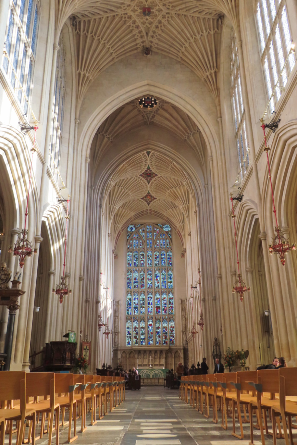 L’église abbatiale de Bath est située sur la même place que les thermes romains. Elle est dédiée à Saint Pierre et fut fondée en tant que monastère bénédictin. Elle a été construite entre 675 et 1530. Le premier roi d’Angleterre, Edgar, s’y fit couronner en 973 par l’archevêque de Canterbury. Elle est un magnifique exemple de l’architecture gothique anglaise avec ses piliers qui se terminent en éventail sous la voute. On peut également visiter le musée de l’abbaye situé sous l’église pour découvrir son histoire, mais aussi pour s’y déguiser en moine ou pèlerin.
