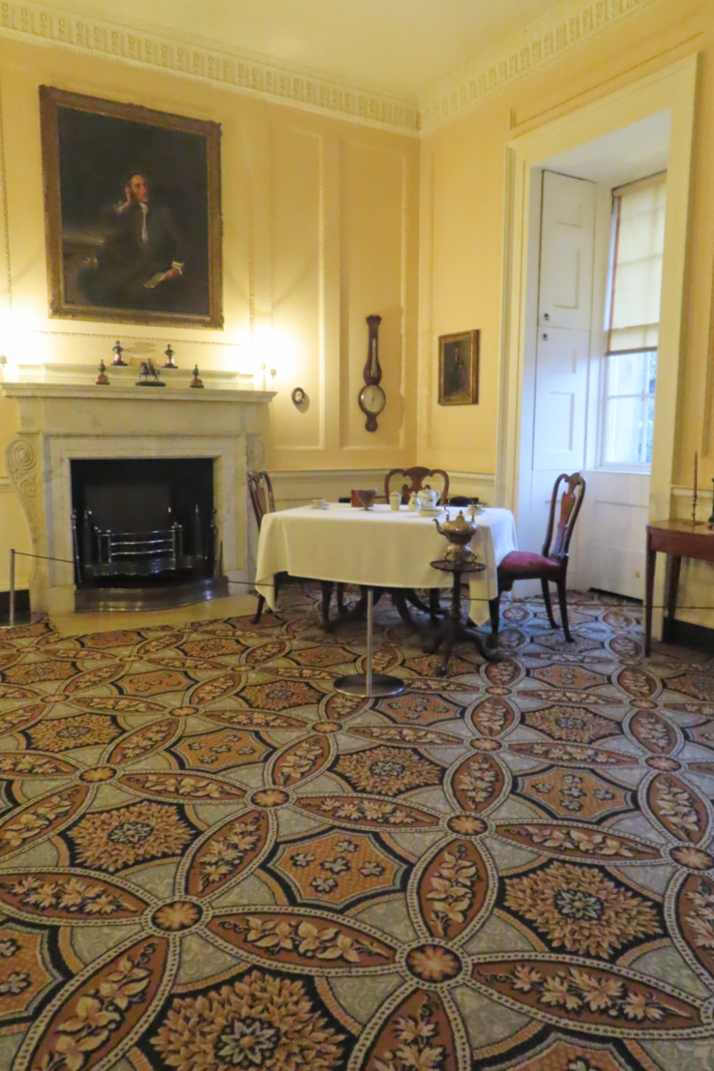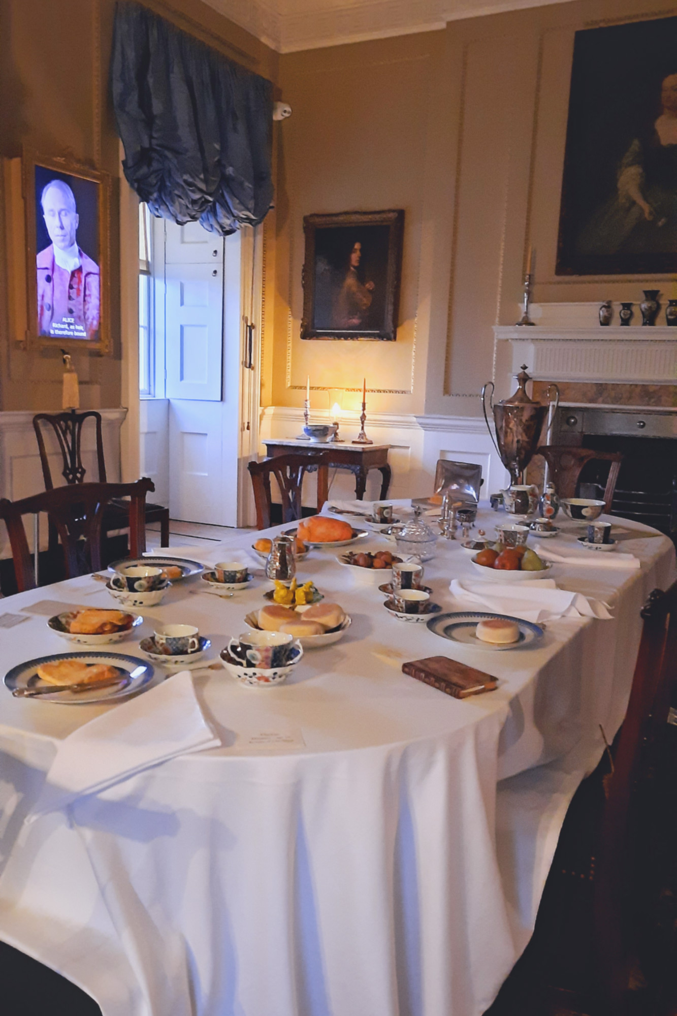 Le N°1 Royal Crescent est situé, comme son nom l’indique, au bord du Royal Crescent. Il s’agit de la première maison du croissant construite par John Wood le Jeune. Ayant d’abord appartenu à un riche propriétaire terrien, puis à des ecclésiastiques et à des membres de la petite noblesse, la maison a été transformée en musée en 1970 rachetée en 2006 par la Brownsword Charitable Foundation dans le but de la mettre à la disposition du Bath Preservation Trust et d’en faire ainsi un musée. La visite de cette maison georgienne permet donc de découvrir la vie à la fin du XVIIIe siècle (1776-1796) grâce aux pièces aménagées comme à l’époque (dont celles des servants), mais aussi grâce aux éléments immersifs que l’on trouve dans les pièces. Par exemple, les tableaux de la salle à manger s’animent et parlent pour reconstituer un dîner de famille. Cela rend l’expérience plus ludique et donne l’impression qu’une famille y vit toujours. Cela donne aussi l’occasion d’aborder le thème du commerce des esclaves. J’ai aimé visité cette maison pour l’immersion dans la vie à l’ère georgienne, notamment parce que c’était la tombée du jour et que l’intérieur était peu illuminé, presque à la bougie, rendant l’expérience de l’époque encore plus concrète (même s’il était plus difficile de faire des photos!).