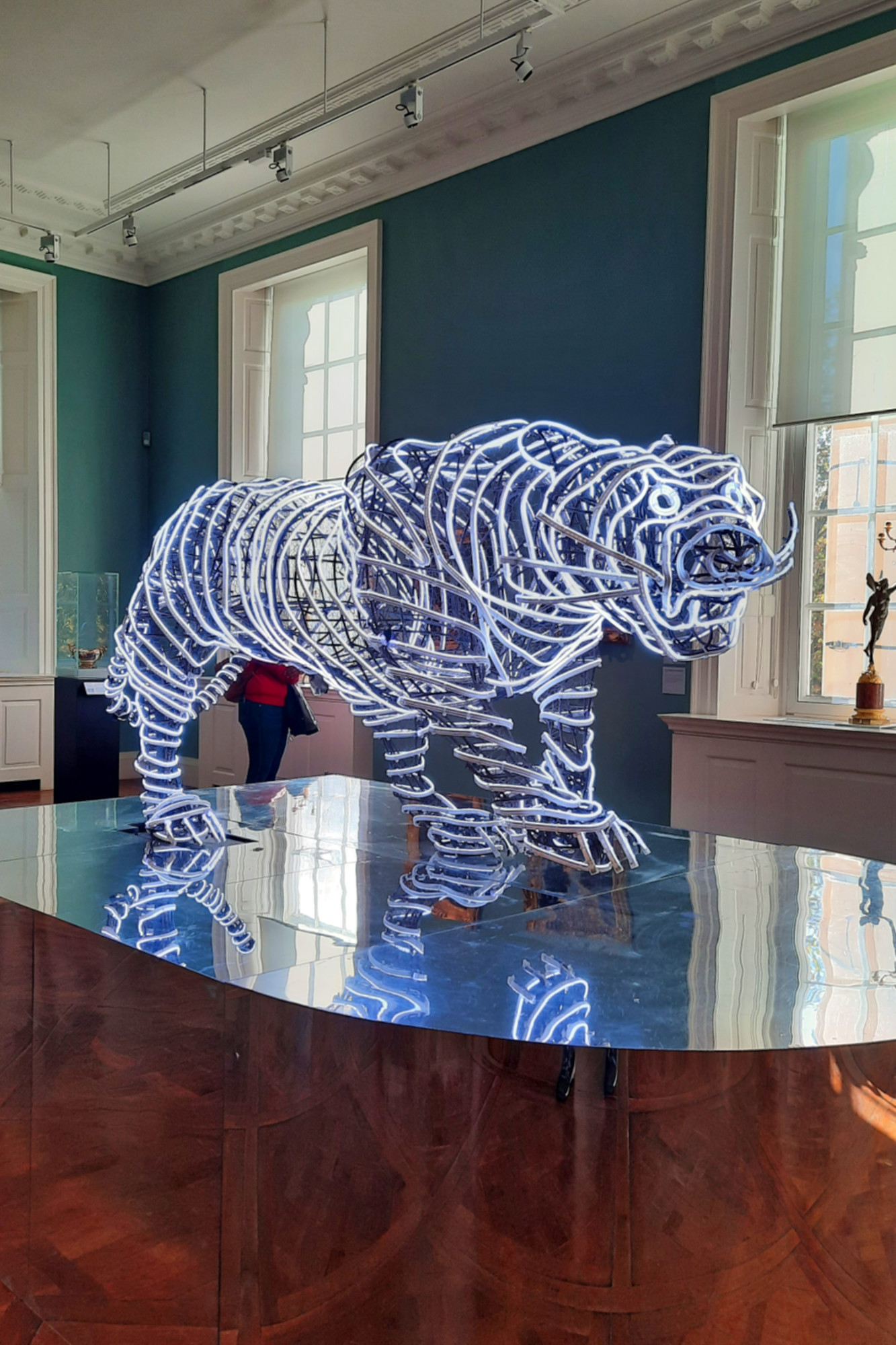 Le Holburne Museum est le plus grand musée de Bath. Il a été fondé en 1882 pour abriter la collection de plus de 4000 objets d’art et tableaux de Sir Thomas William Holburne. Il occupe l’ancien Sydney Hotel depuis 1916 et une extension en verre depuis 2011. J’ai aimé le savant mélange entre beaux-arts et arts décoratifs de ce musée, des tableaux très classiques du XVIIIe siècle, des collections de porcelaine chinoise, des sculptures en marbre, des œuvres très modernes en néon. Et comme c’était Halloween, il y avait également des œuvres effrayantes réparties un peu partout dans le musée.