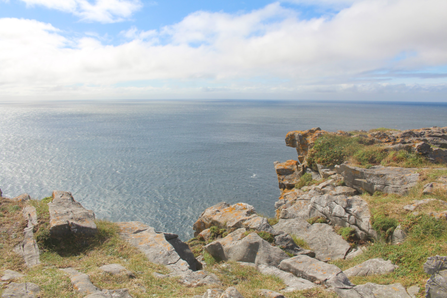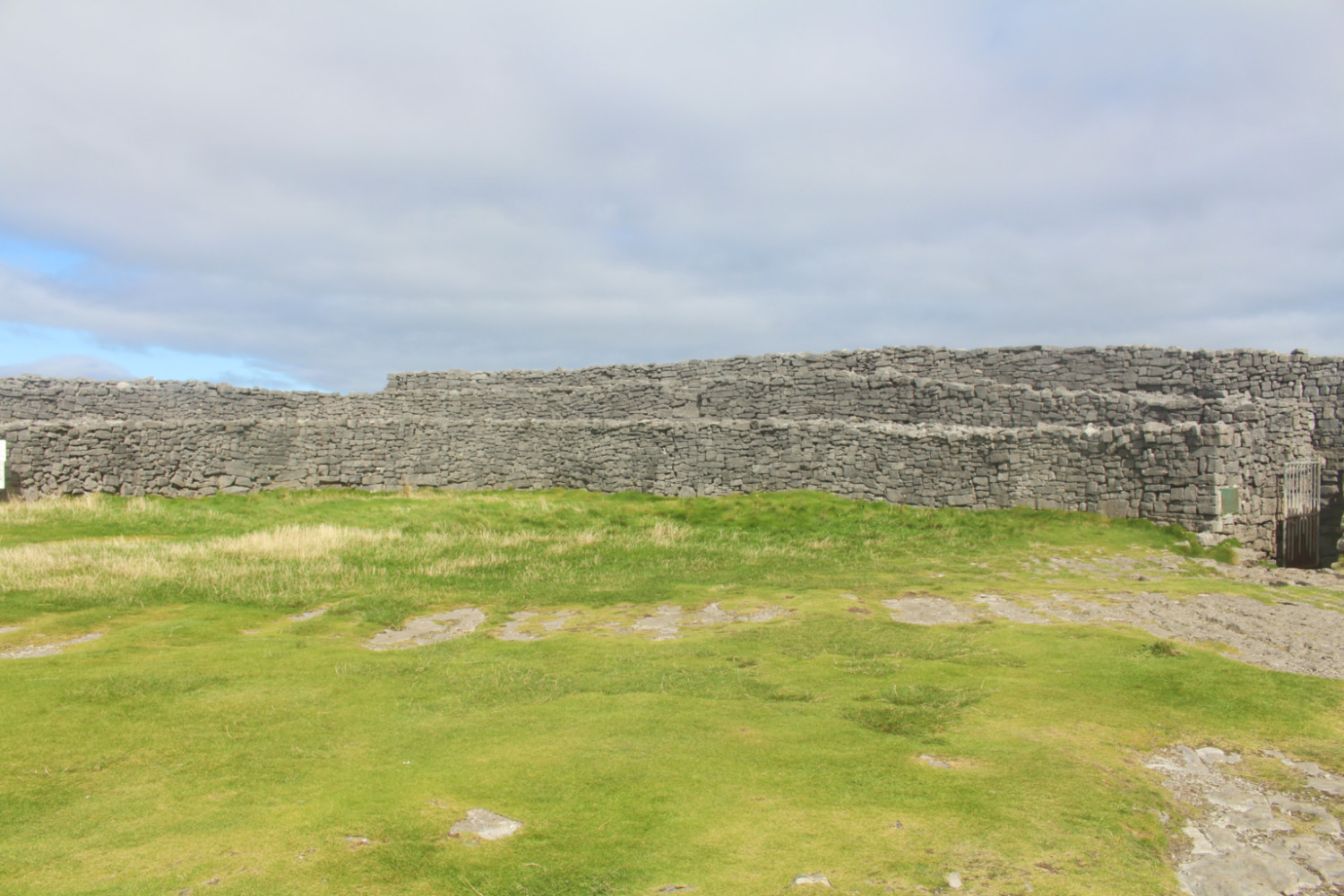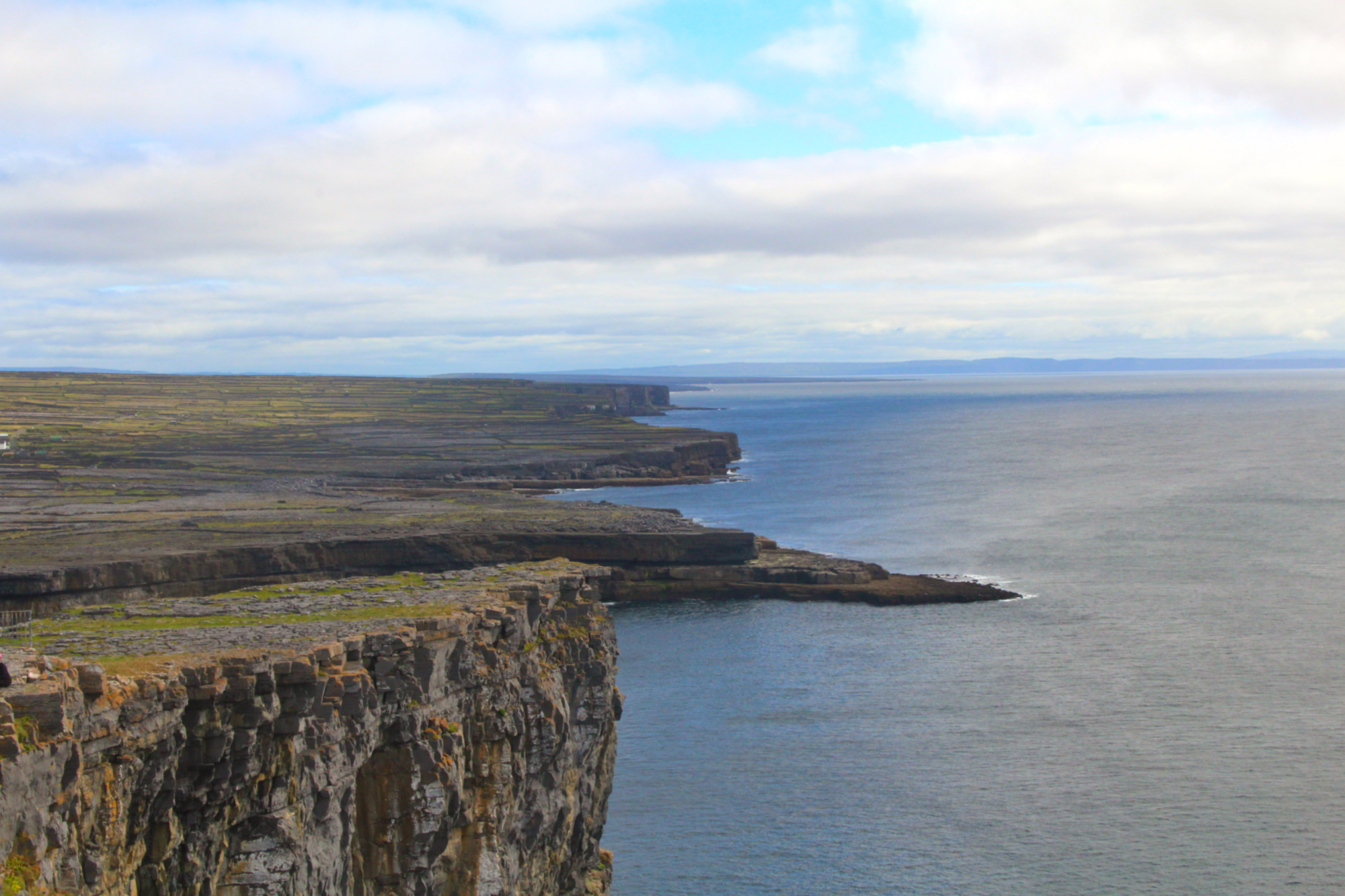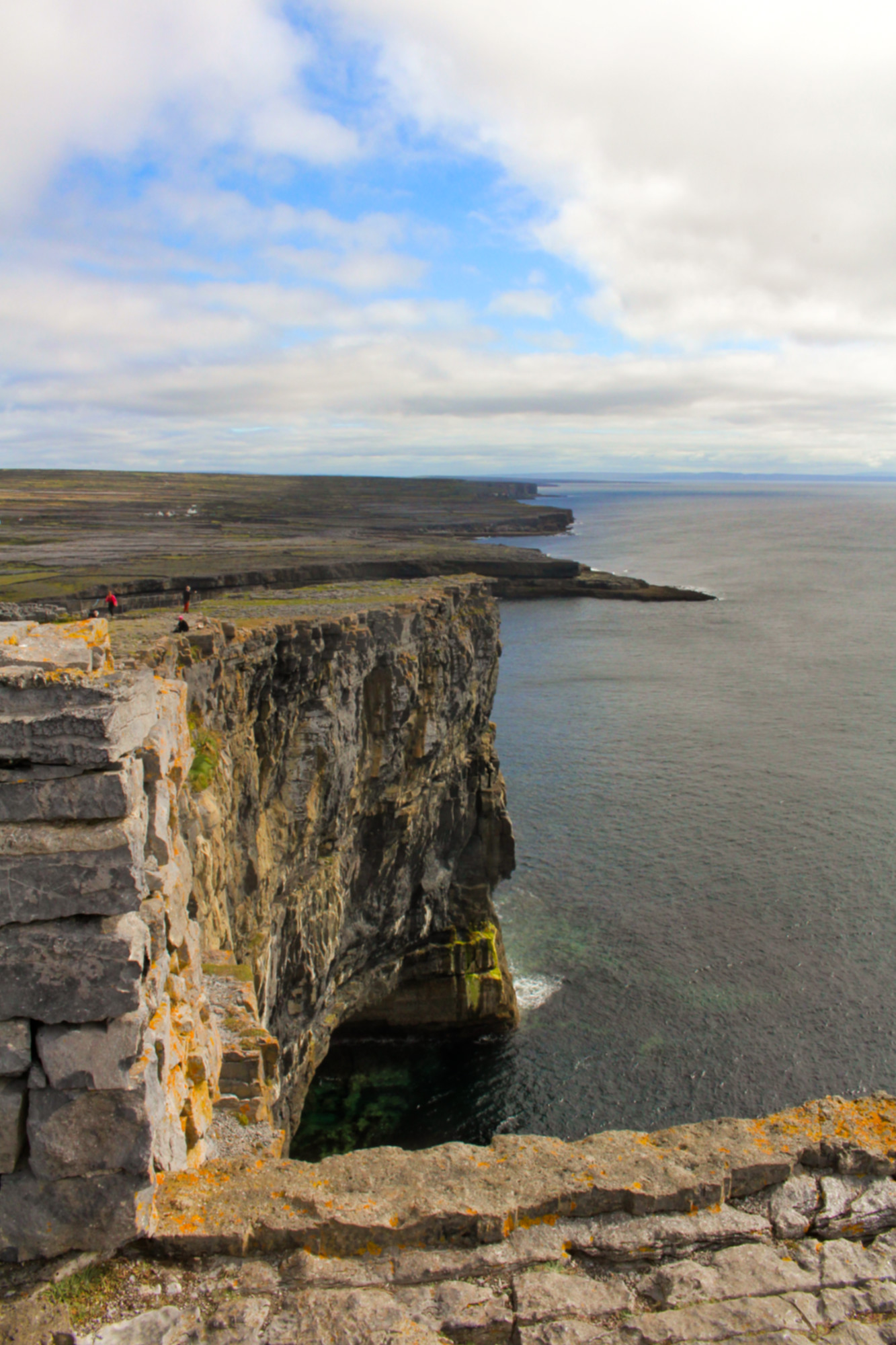 Puis j’ai bifurqué sur la côte sud pour me rendre au château de Dún Aonghasa, une forteresse semi-circulaire impressionnante de l’âge de fer qui domine l’océan atlantique. On ne peut se rendre aux falaises à vélo, il faut le laisser sur un parking (personne n’a d’antivol) et marcher un bon quart d’heure. Avec ses falaises de 100 m de haut qui tombent à pic dans l’océan, le site est spectaculaire… et certains touristes assez imprudents.