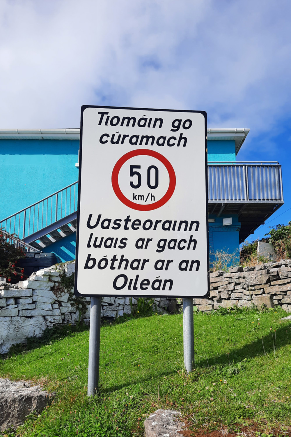 Célèbre pour les pulls en laine, j’ai été séduite par Inis Mór (ou Inishmore en anglais, ce qui signifie « la grande île »). Tout d’abord, on y parle irlandais, l’anglais n’est que la deuxième langue. Ne vous étonnez donc pas de voir tous les panneaux exclusivement en irlandais.