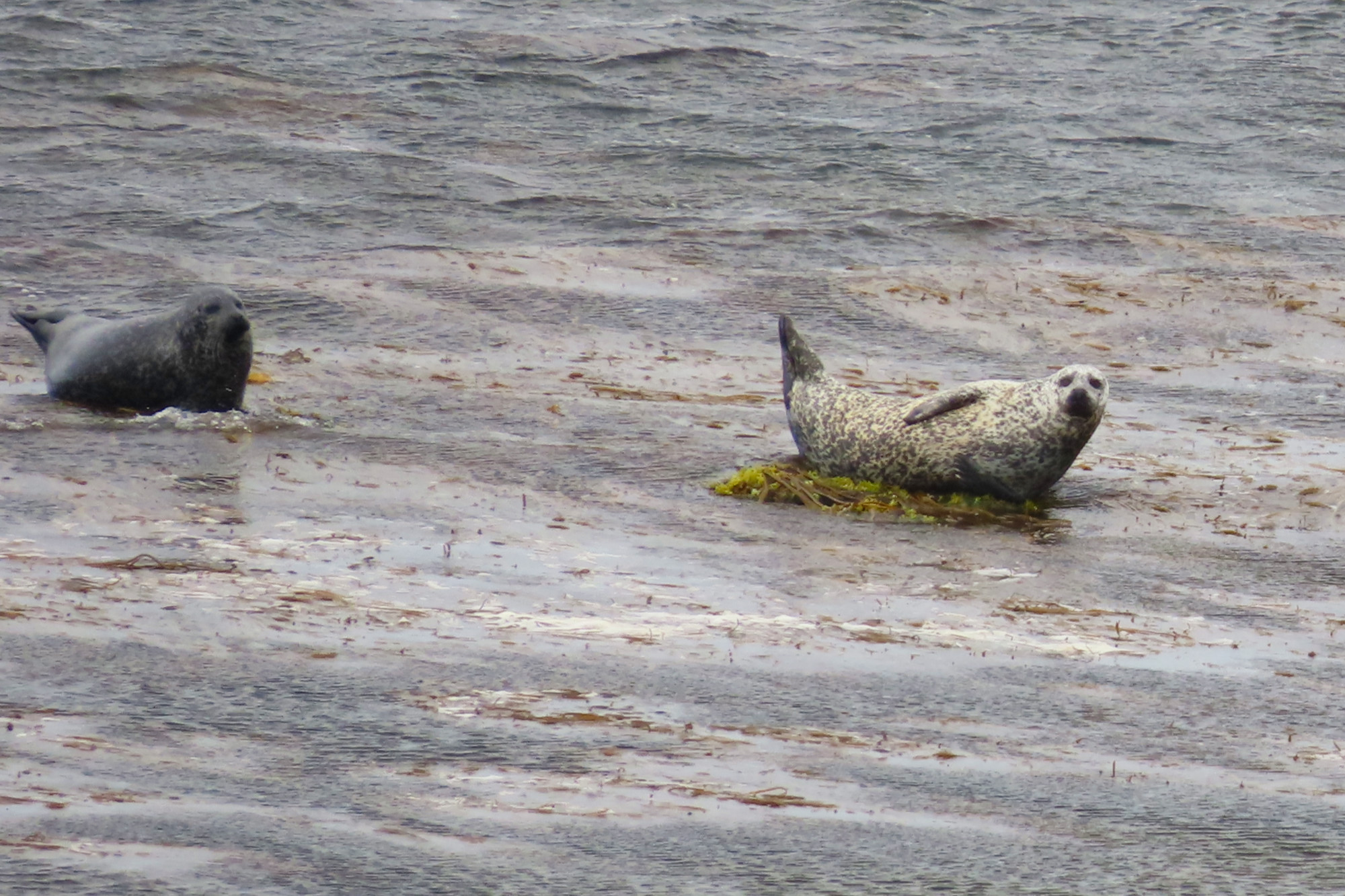 Sur le chemin du retour, je suis repassée par la côte nord, et cette fois, les phoques étaient au rendez-vous, tranquillement en train de se réchauffer au soleil. Si j’avais déjà aperçu quelques phoques en Écosse et en Islande, c’est la première fois que je voyais une colonie se prélasser au bord de l’eau. J’étais tellement contente de les voir!