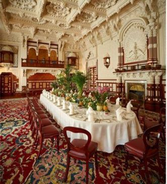 Si l’escalier est vraiment majestueux, c’est la salle à manger qui m’a époustouflée. Il faut dire que même après tous ces styles, on ne s’attend pas à entrer dans un palais indien lorsqu’on passe cette porte. En effet, la reine Victoria était devenue la première impératrices des Indes en 1876. Sa salle à manger est somptueuse, les murs et le plafond sont sculptés minutieusement comme de la dentelle. Ce fut vraiment le moment « wow » de ma visite, et la dernière pièce que l’on visite d’ailleurs, le clou du spectacle.