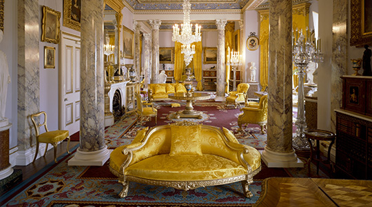 Tout comme au palais de Buckingham, les photos sont malheureusement interdites à l’intérieur (et à en chercher sur internet, je constate qu’il y a très peu de photos officielles). C’était donc une visite un peu frustrante pour moi. A l’intérieur, beaucoup de styles se mélangent. Tous les plafonds sont peints ou décorés, voire chargés, du bleu turquoise, du rose, du jaune, du vert, des fleurs… On passe d’œuvres égyptiennes, à des tableaux renaissance, aux dorures des portes, au style partie de chasse de certains meubles fabriqués avec de faux bois de cerfs.
