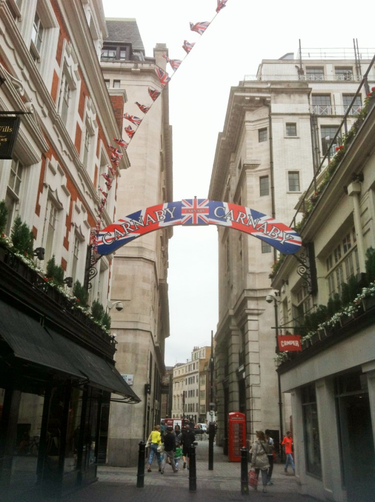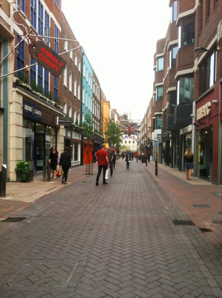 Carnaby Street est une rue piétonne bordée de boutiques, un peu cachée, parallèle à Regent Street. Pour la trouver, il ne faut donc pas hésiter à emprunter les petites rues sur Regent Street comme Foubert’s Place. Le premier magasin n’a ouvert ses portes qu’à la fin des années 1950. Mais c’est dans les années 1960 que Carnaby Street va vivre son heure de gloire. Beaucoup de boutiques branchées s’y étaient établies et des groupes de rock comme les Rolling Stones ou The Who y traînaient souvent. La réputation sulfureuse de Carnaby Street était faite, elle était devenue le centre du Swinging London. C’est ici qu’on faisait la mode des sixties. La rue est devenue piétonne en 1973. Aujourd’hui, c’est une jolie rue commerçante, qui a gardé un peu de son côté excentrique et coloré. Et pour une pause tranquille éloignée des touristes qui arpentent la rue, rendez-vous à Kingly Court, une mini-galerie cachée dans Carnaby Street.