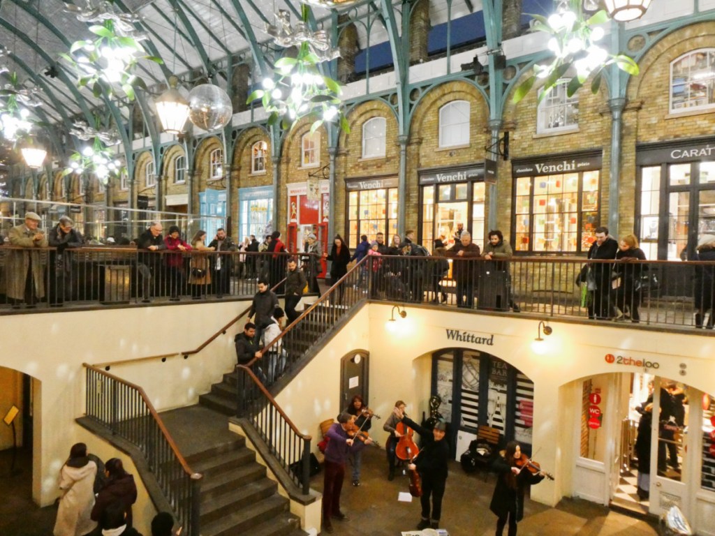 C’est un quartier de Londres qui s’articule autour de la piazza, du marché couvert et de la petite église de St Paul. Il y a beaucoup de boutiques et restaurants dans le marché et aux alentours. Difficile à croire qu’il s’agissait avant d’un marché de légumes et que l’aménagement des petites boutiques ne date que de 1974. C’est aussi une grande place animée par des artistes de rue (cirque, musique, sketchs, jongleurs…) et souvent le lieu d’installations artistiques. Dans la section de l’Apple Market, vous trouverez un marché d’artisans et peut-être aurez-vous la chance de faire votre shopping sous les notes de musique d’un orchestre dans la cour du bas. J’aime beaucoup flâner à Covent Garden. Il faut aussi s’aventurer dans les rues adjacentes jusqu’à la colonne de Seven dials, vous y découvrirez des petites rues pavées et la place colorée de Neal’s yard.