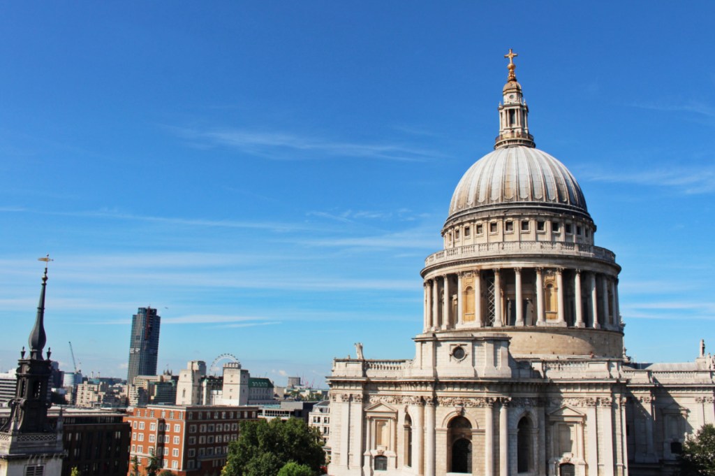 La cathédrale St Paul se dresse fièrement au cœur de la City depuis 1710. Avant ça, il y eu 4 autres cathédrales. Celle du Moyen-Âge était d’ailleurs encore plus grande que l’actuelle. En 1666, le Grand Incendie de Londres la détruisit. L’architecte Sir Christopher Wren dirigea alors les travaux. On doit énormément à Wren dans la reconstruction et la modernisation de Londres. Wren en fit le plus haut bâtiment de la capitale avec ses 111 mètres, et elle le demeura jusqu’en 1962. Son dôme est le deuxième plus grand d’Europe (après Saint-Pierre de Rome). A l’instar de l’Abbaye de Westminster, son entrée est payante (£20) et les photographies interdites à l’intérieur. Elle a été le théâtre de l’enterrement de l’amiral Nelson et du mariage du prince Charles avec Lady Diana. L’amiral Nelson est d’ailleurs enterré dans la crypte de la cathédrale ainsi que Sir Christopher Wren.