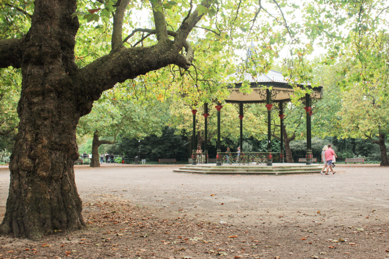 Green Park est un des parcs adjacents à Buckingham Palace (avec St James’s Park et Hyde Park). Il fait 17 hectares. Contrairement aux deux autres parcs voisins, il n’a aucun lac, aucun parterre de fleurs, aucun aménagement, juste des arbres et des étendues de verdure. La légende dit que le roi Charles II (qui en fit un parc royal en 1668) aimait y cueillir des fleurs pour sa maîtresse. Sa femme la reine Catherine aurait donc exigé qu’on enlève toutes les fleurs du parc. Attention, si vous vous asseyez dans les chiliennes, un agent viendra vous réclamez quelques pièces pour ce privilège.
