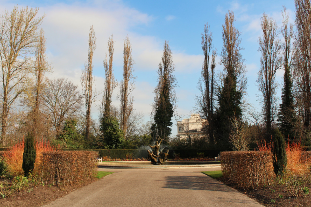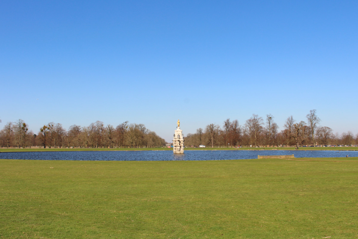 Bushy park est situé aux confins de la métropole londonienne, au bord du palais d’Hampton Court. Il est devenu parc royal en 1529 lorsque le cardinal Wolsey céda sa propriété d’Hampton Court et les terrains attenants au roi Henry VIII, afin de revenir dans ses bonnes grâces. Le parc abrite ainsi des dizaines de cerfs qui vivent en liberté depuis l’ère Tudor. Même s’ils sont habitués à voir des humains de près, il est interdit de les nourrir ou tenter de les caresser. J’en ai même vu un aller toquer à la fenêtre d’une maison qui bordait le parc pour réclamer à manger! Au milieu du parc se trouve la fontaine de Diane (photo de gauche), œuvre de Christopher Wren, célèbre architecte à qui l’on doit la rénovation du palais d’Hampton Court.