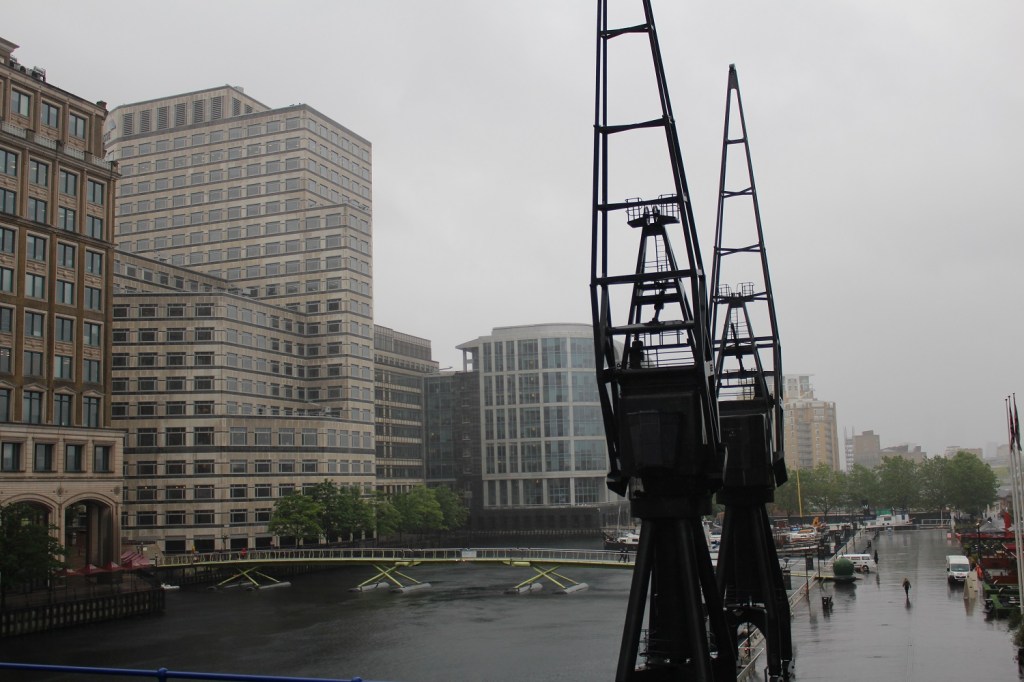 Situé sur une péninsule appelée Isle of Dogs (qui n’est pas une île et qui n’a sûrement pas plus chiens qu’un autre quartier), Canary Wharf est pourtant un quartier intéressant et totalement désertique le dimanche. C’est le nouveau quartier d’affaires de Londres depuis la fin des années 1980. Environ 100 000 personnes y travaillent. On s’y sent un peu comme à New York au milieu de la jungle des buildings, on peut y faire du shopping ou tout simplement marcher le long des canaux. Durant le XIXe siècle (et jusque les années 1980) ce quartier était les docks de Londres. Il tire son nom des grands entrepôts qui stockaient les produits venus des îles Canaries (entre autres).