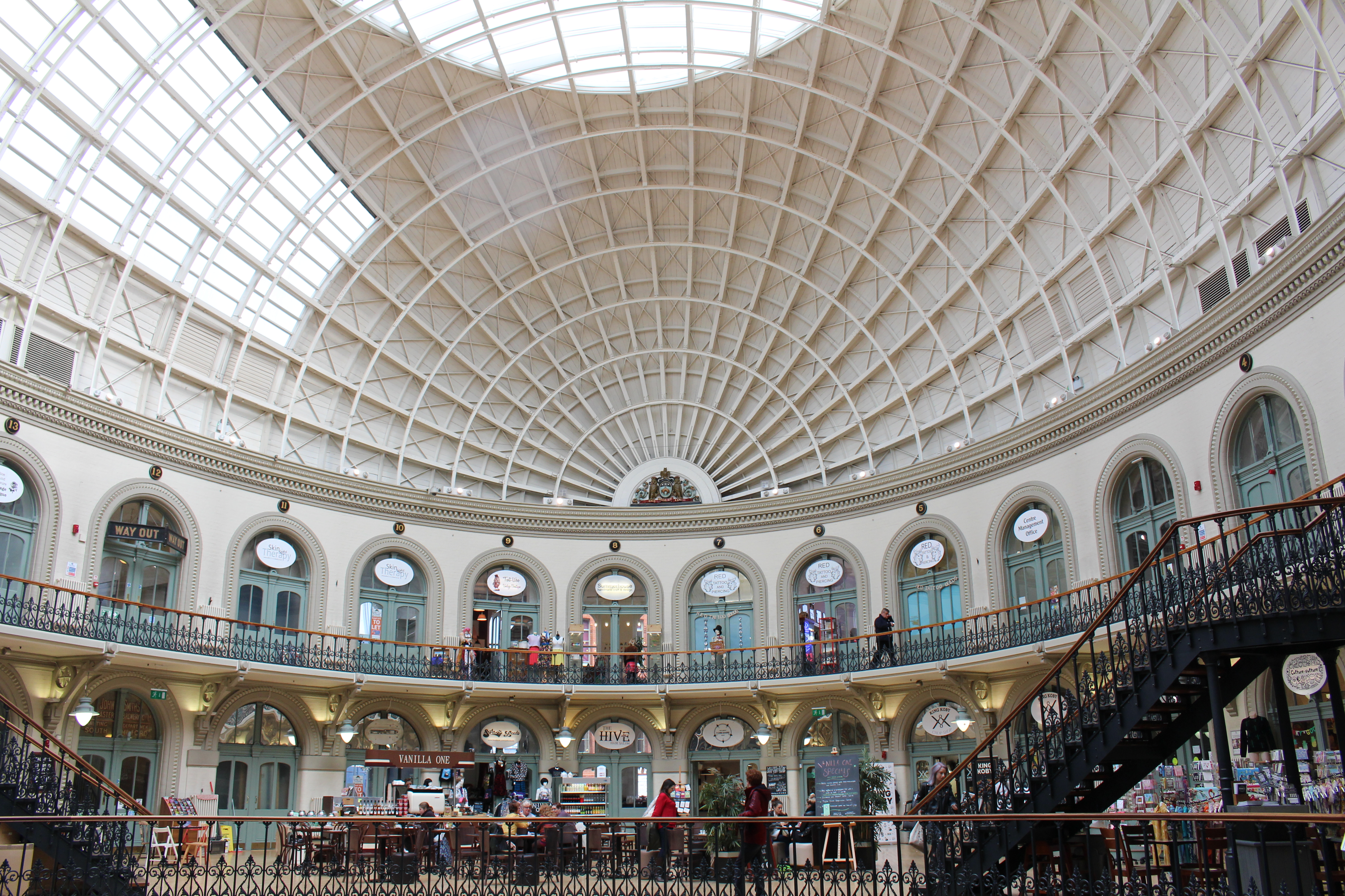 Juste à côté du Kirkgate Market, on trouve le Corn Exchange. Ouvert en 1864 et construit lui-aussi par Cuthbert Brodick, cet ancien marché aux grains est élégant comme une salle de théâtre. Son dôme ajouré permettait aux acheteurs d’examiner les grains de maïs sans risquer que la lumière du jour n’altère leur qualité. Après plusieurs rénovations, c’est désormais une halle avec des boutiques indépendantes pleines de charme.