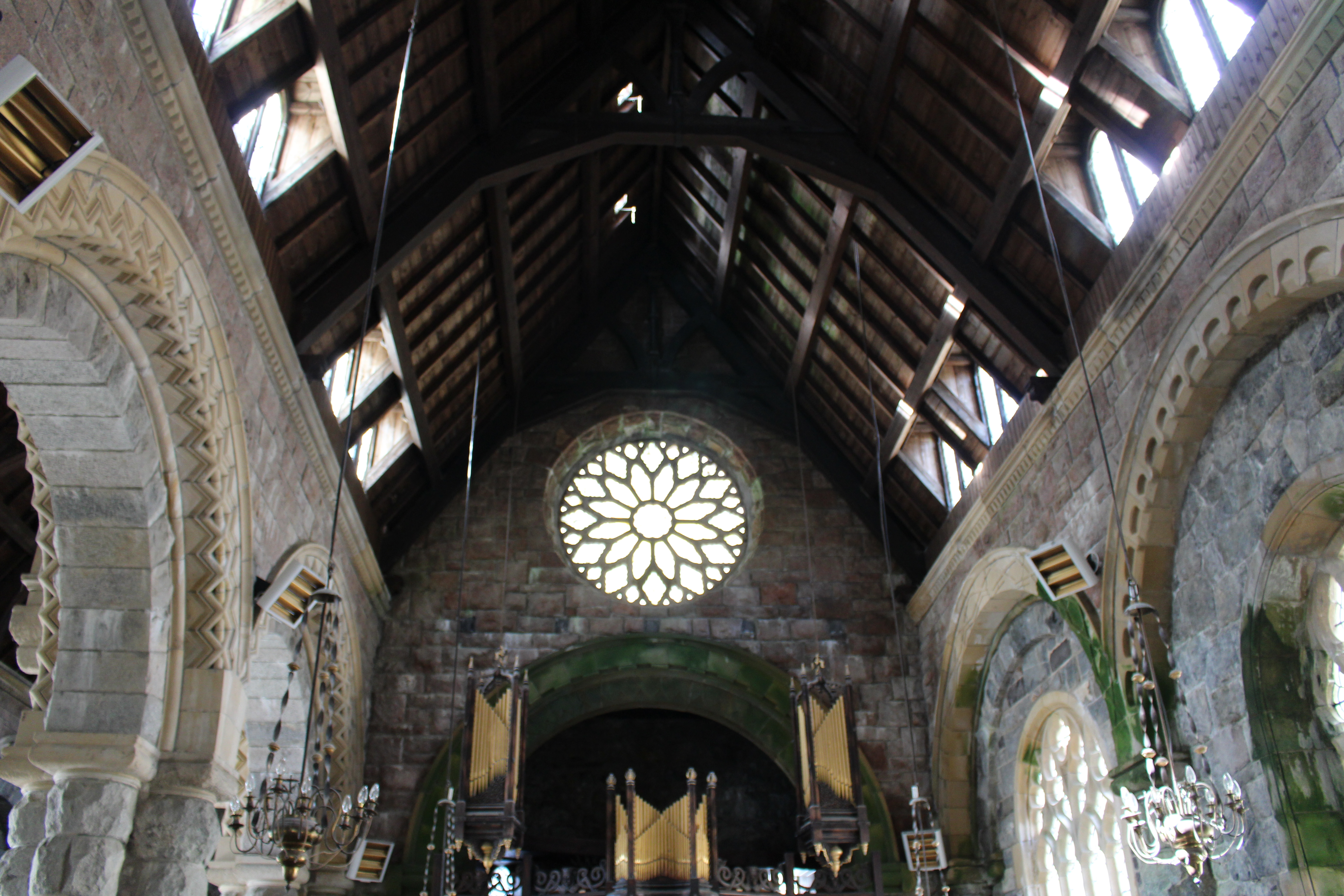Surtout, n’oubliez pas de sortir sur la terrasse au bord du loch Awe. La vue est tout simplement sublime et si reposante. On y poserait bien un transat au soleil. Ce coté-ci de l’église est encore plus atypique que l’intérieur. Regardez les gargouilles en forme de chien et de lièvres ou encore les statues de chouettes. Autour du cadran solaire, vous trouverez 7 pierres formant la phrase biblique Thy sun shall no more go down tellement appropriée en ce jour de soleil.