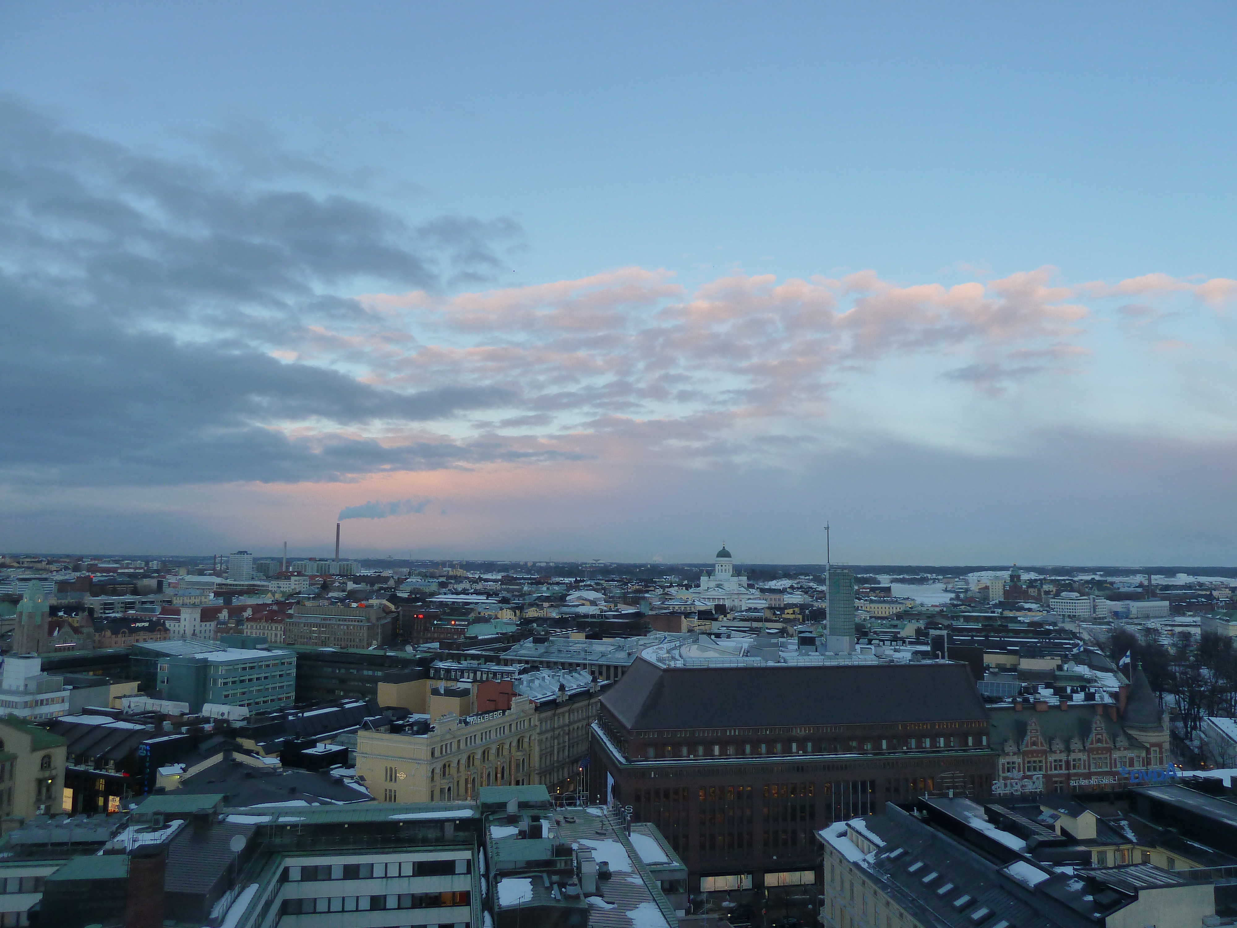 Vue sur Helsinki du haut de l’hôtel Torni (14 étages, rue Georgsgatan). On peut prendre un verre sur cette petite terrasse.