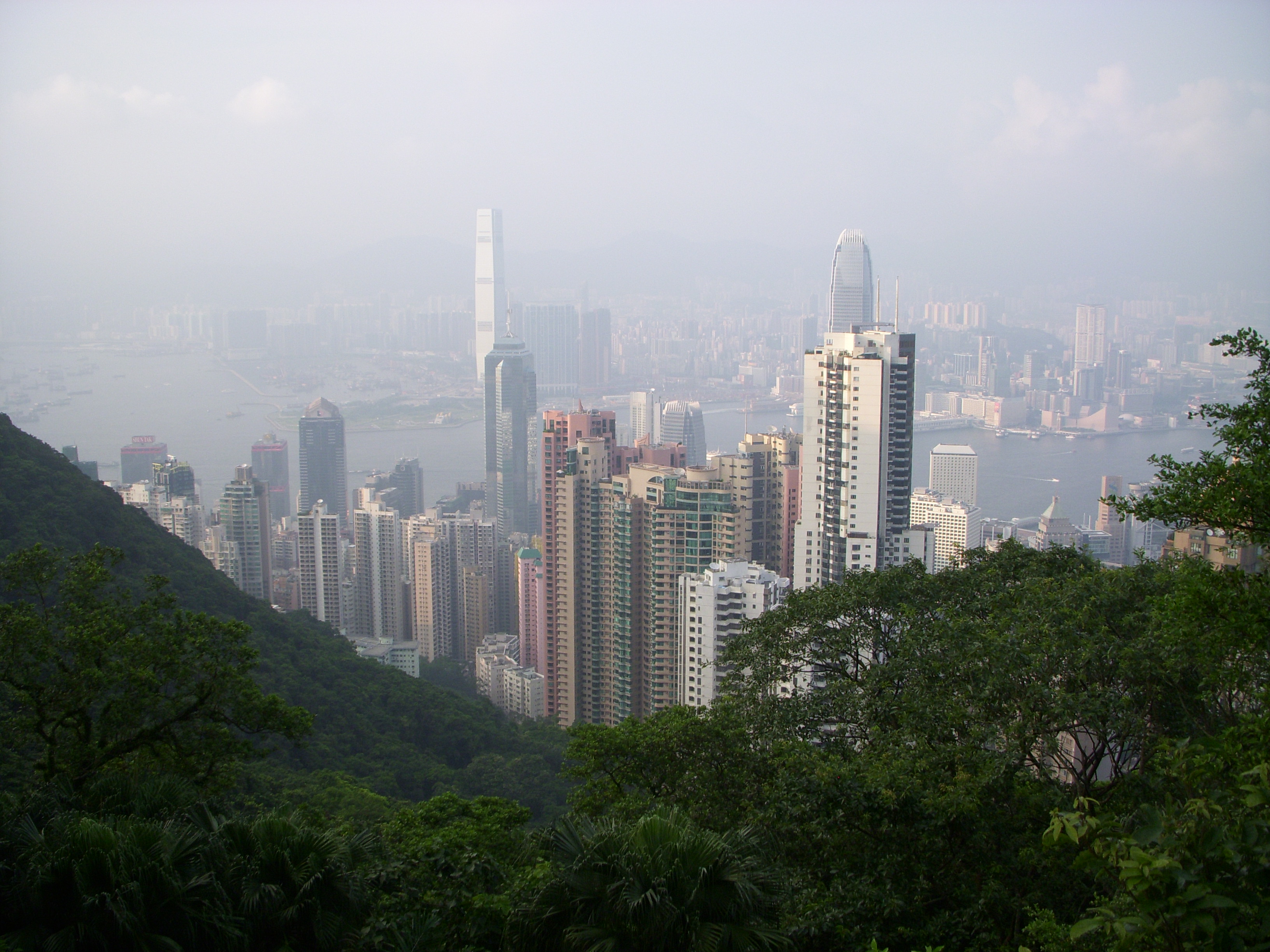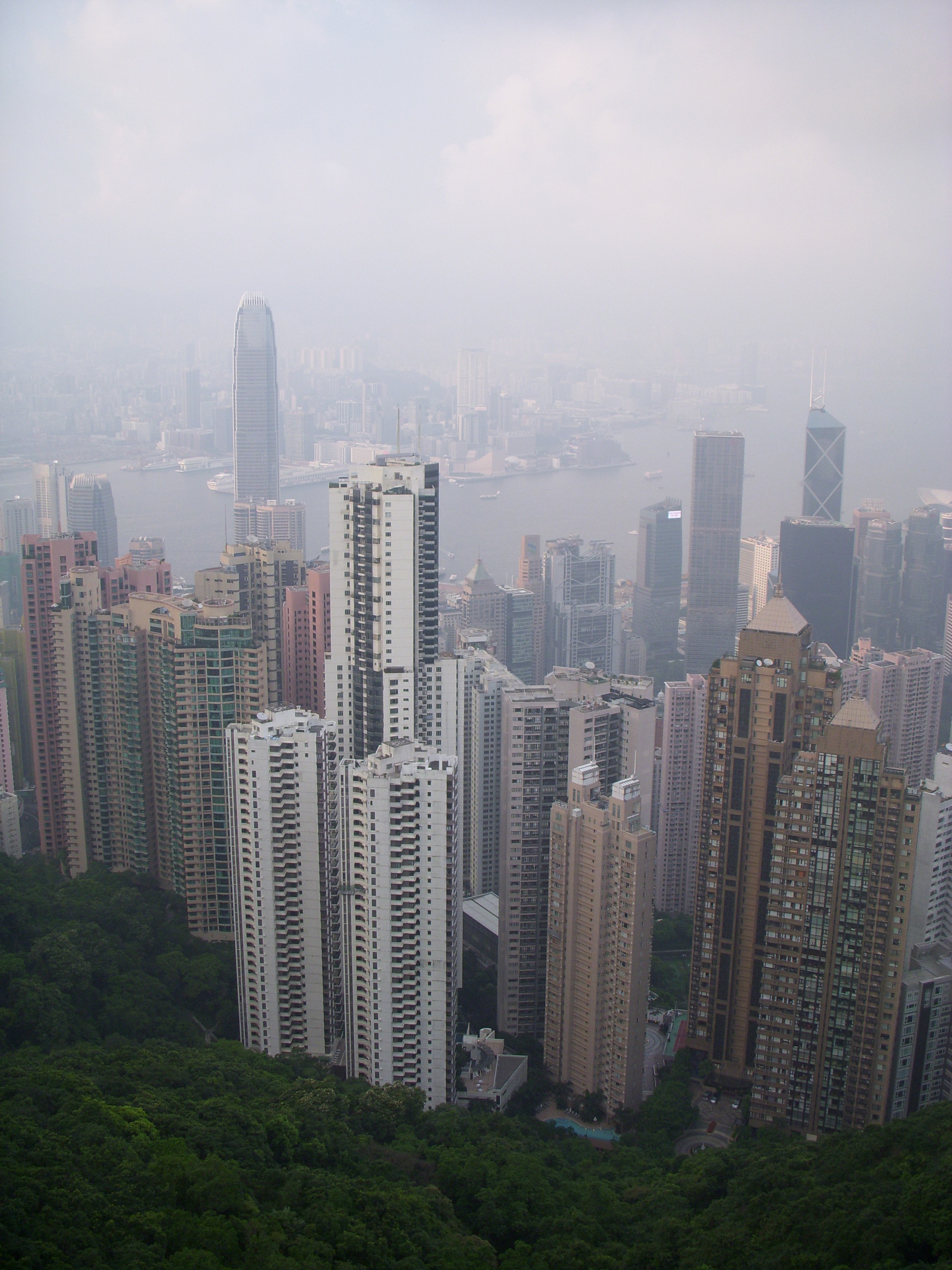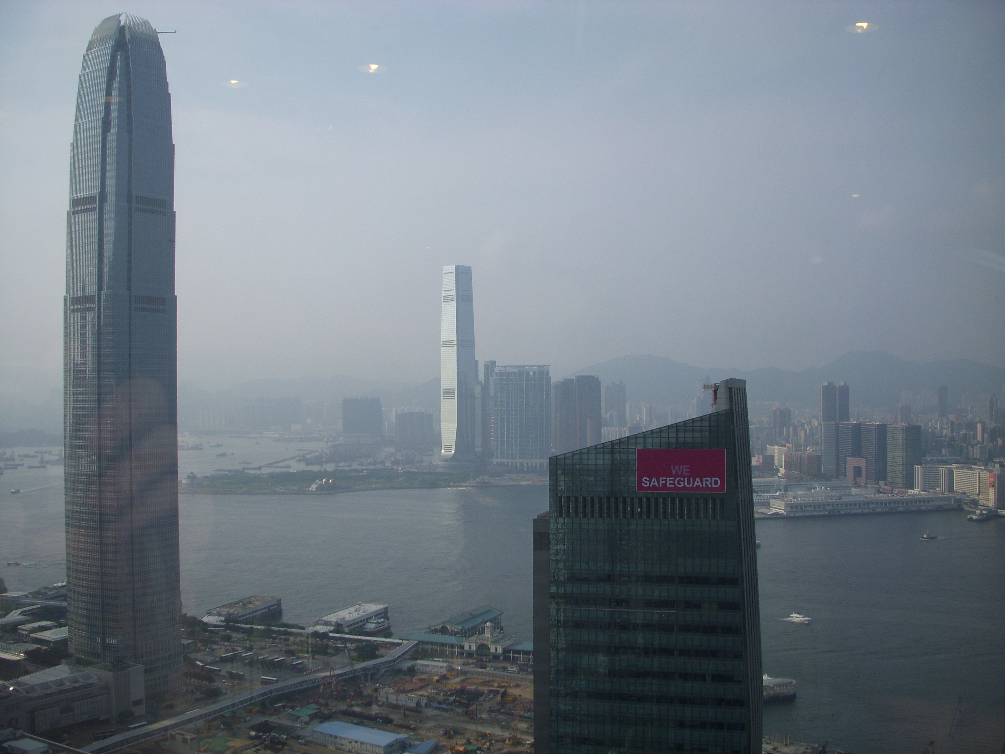 La vue est un peu bouchée (comme souvent) sur la baie d’Hong Kong, mais avouez que ça valait le coup de déranger ces banquiers. A gauche on peut voir le IFC building avec le terminal du Star Ferry à ses pieds.