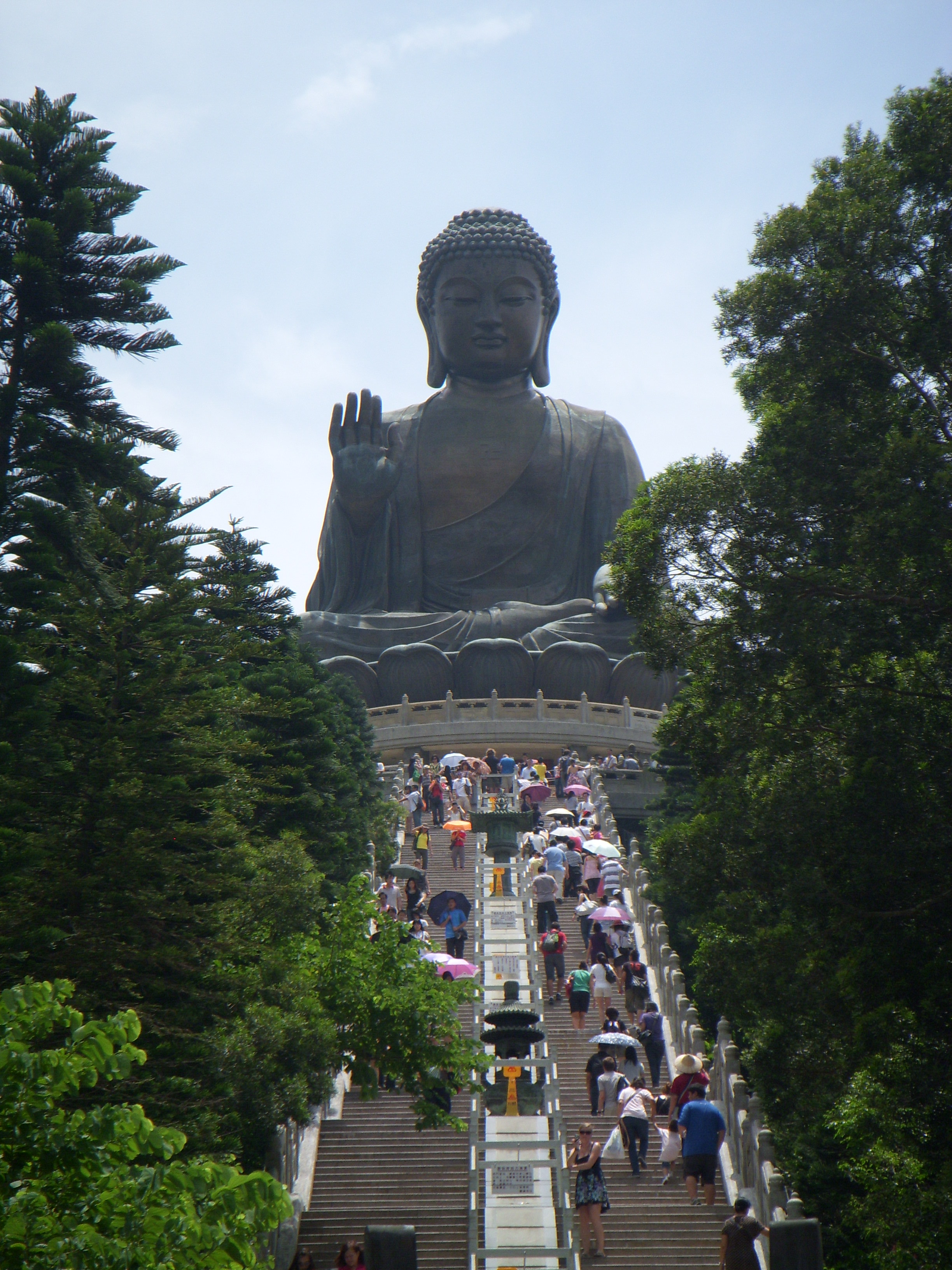 Enfin! Le Tian Tan Buddha!! Je dois l’avouer, j’étais un poil déçue de découvrir qu’il avait été construit en 1993 et qu’il n’était donc pas une divinité ancestrale. Ca perd un peu de son charme d’un coup, mais l’immensité de cette statue vous fait vite oublier son âge. A vous les 268 marches du « chemin de la sagesse »!