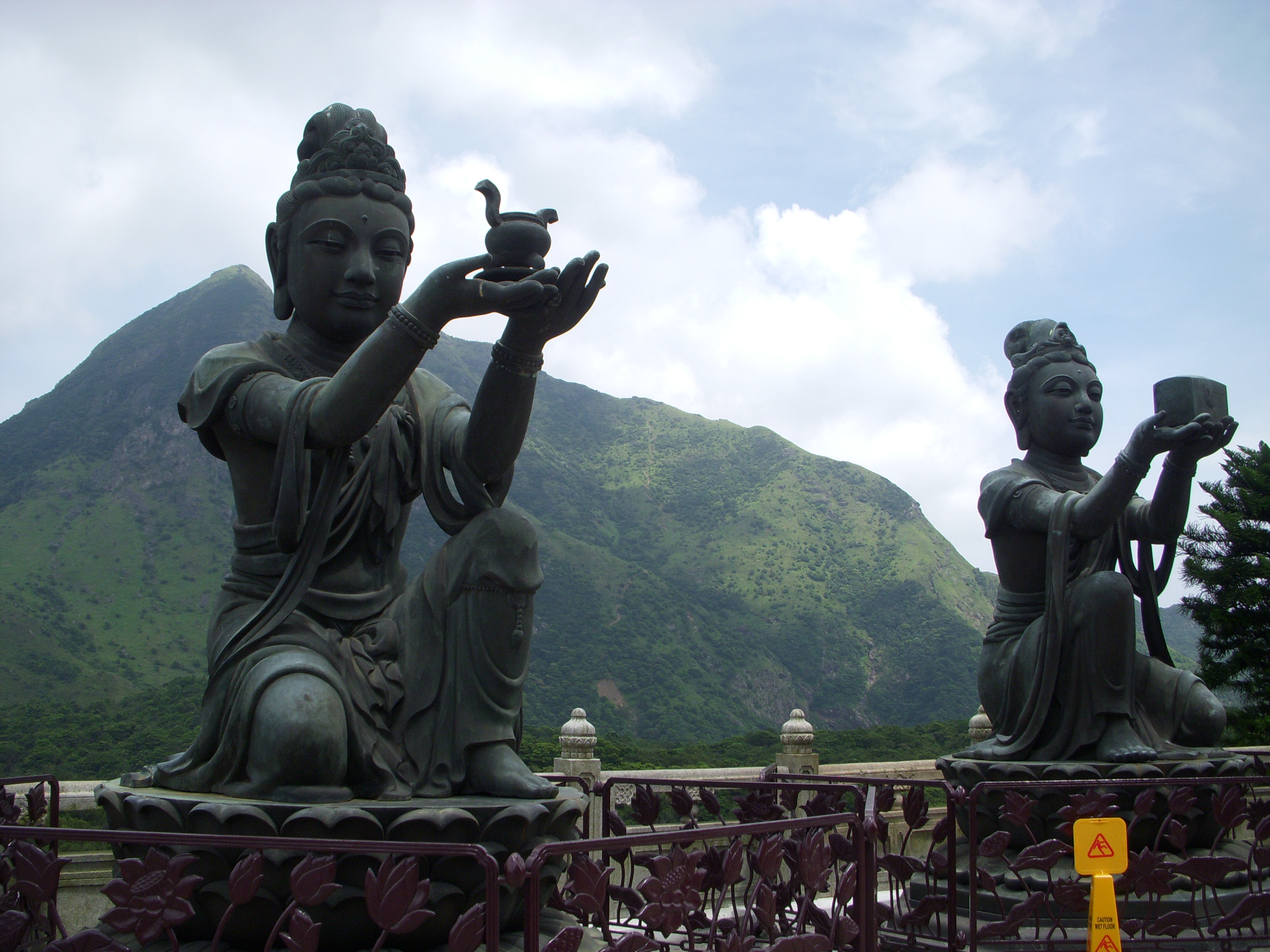 Le Grand Bouddha est entouré de 6 statues de divinités lui offrant des fleurs, de l’encens, une lampe, de l’huile, des fruits et de la musique. Elles représentent la charité, la moralité, la patience, la ferveur, la méditation et la sagesse (les qualités requises pour accéder au Nirvana).