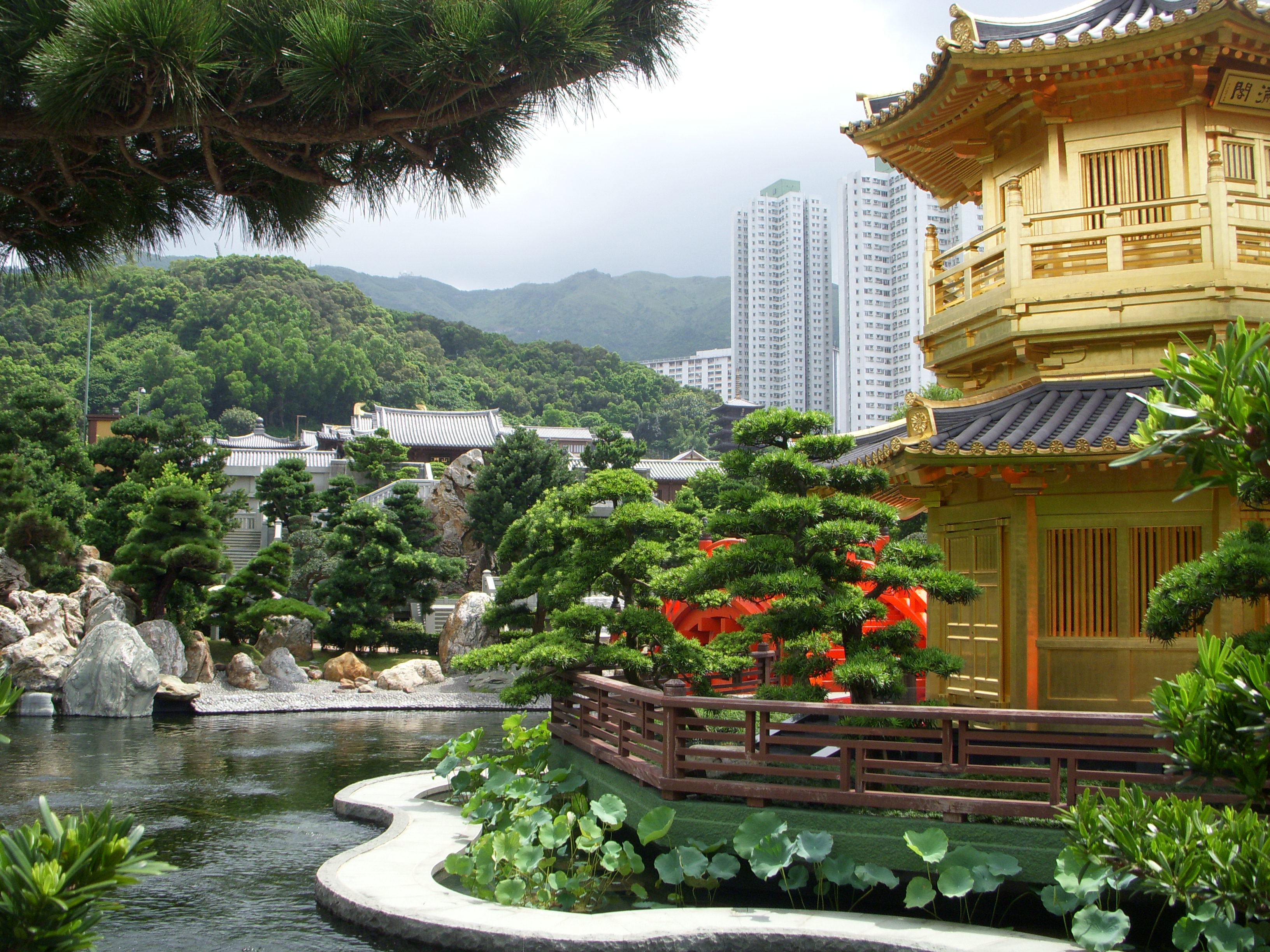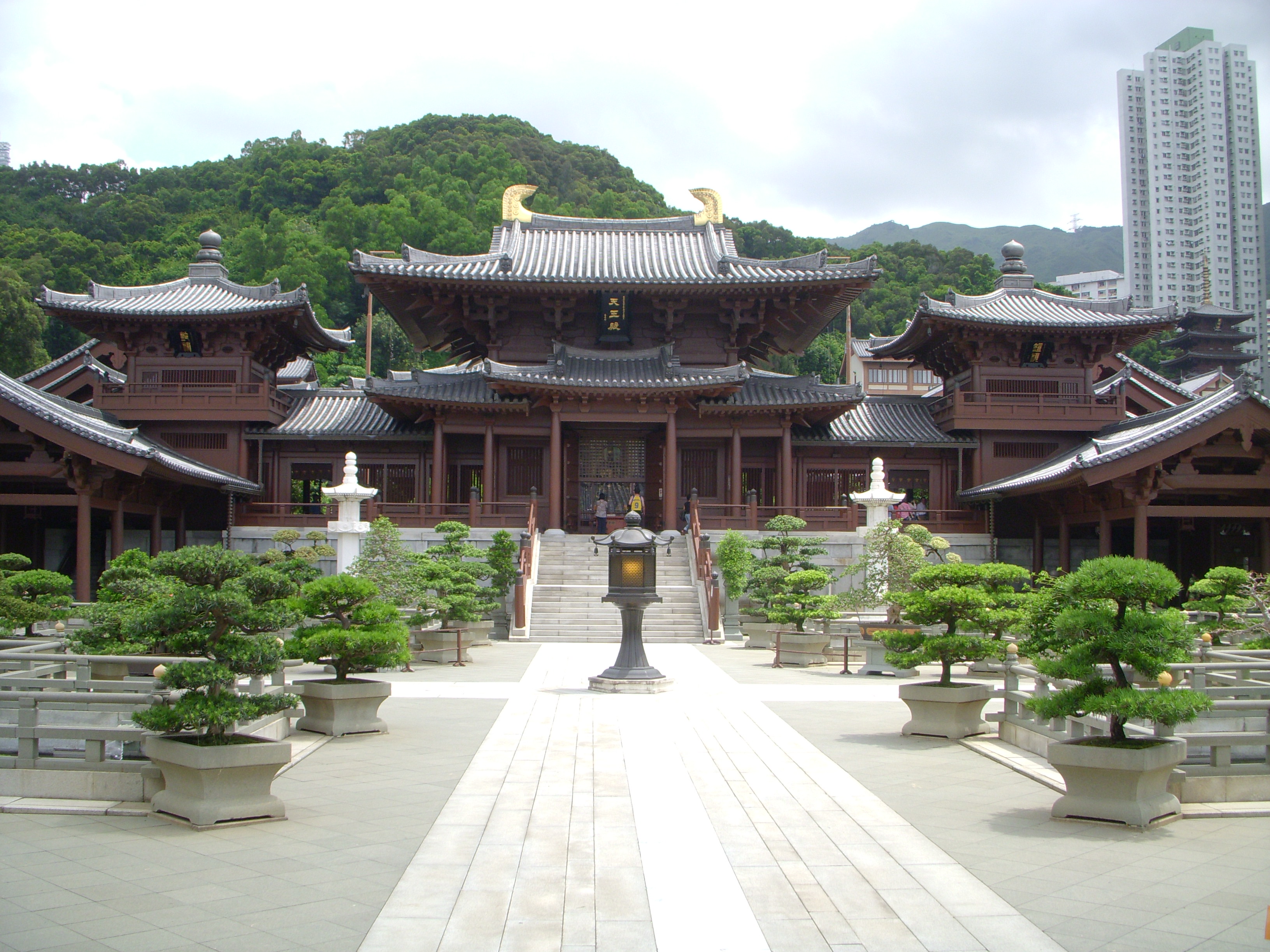 Le couvent de Chi Lin se trouve dans le quartier de Kowloon, sur la Diamond Hill. C’est un temple bouddhiste qui, malgré son apparence traditionnelle, date seulement des années 1930 (et reconstruit en 1990). Passer la porte de ce couvent, c’est littéralement entrer dans un havre de paix. Tout à coup tout est calme, pas un bruit, tout est harmonieux et rien n’agresse l’œil.